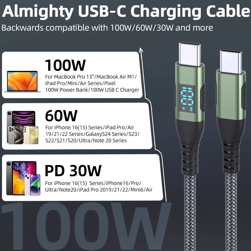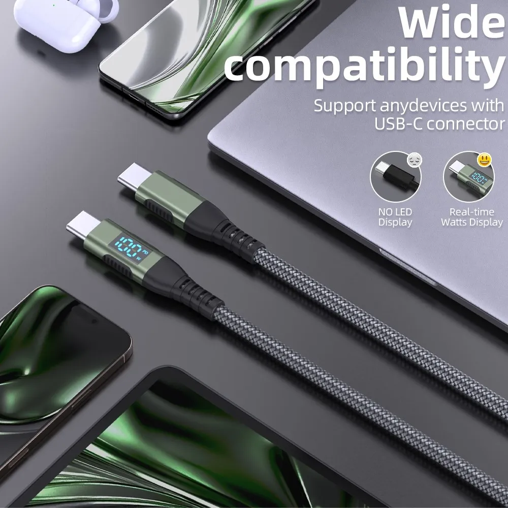 1 m-es nejlon USB-C / USB-C kábel kijelzővel és 100 W-os gyorstöltés támogatásával. Nagy teljesítmény, strapabíró kialakítás és megbízható adatátvitel.