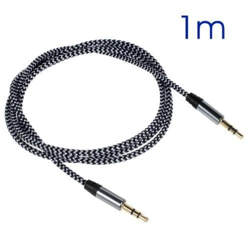 1m fonott audio jack/jack hosszabbító kábel - fekete
