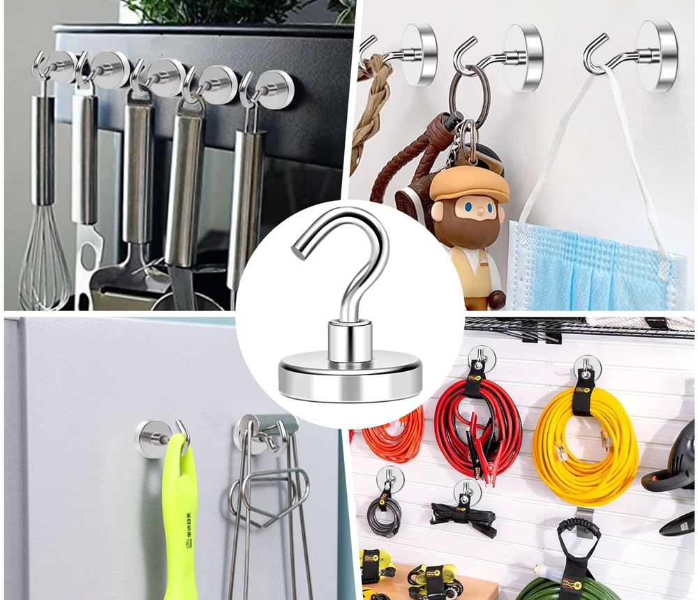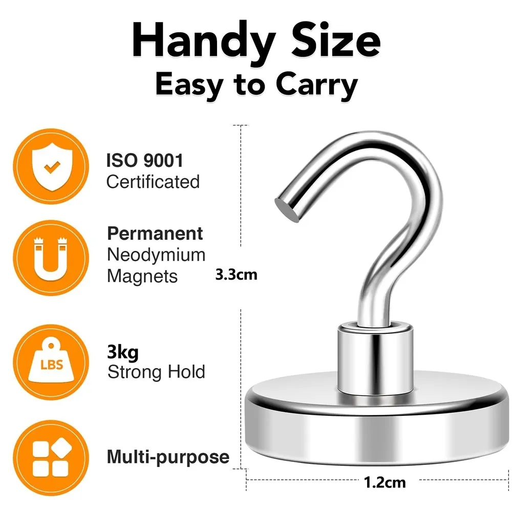 Praktikus megoldás szerszámok, konyhai eszközök vagy dekorációk felakasztására fúrás nélkül. Ez a acél mágneses kampó 3 kg teherbírással erős mágnessel van ellátva, amely stabilan rögzül a fém felületeken. A felszerelés azonnali és nem igényel semmilyen szerszámot.