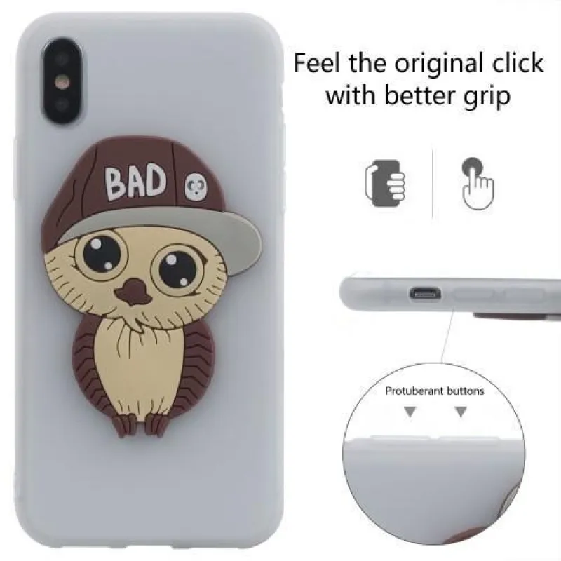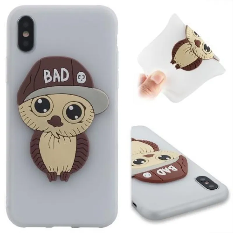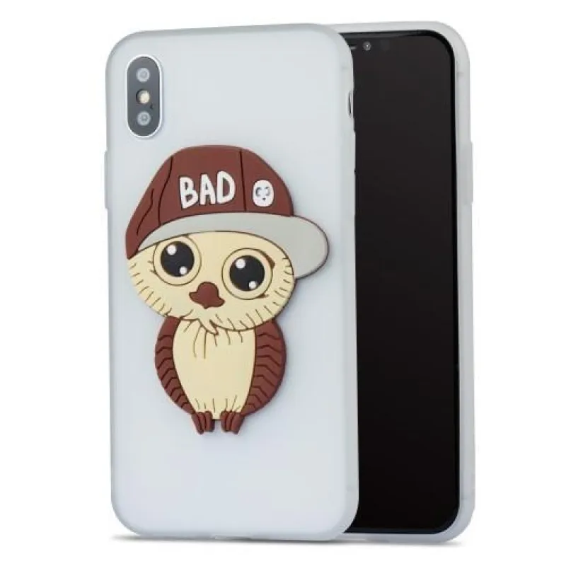 Gyönyörű zselés tok iPhone X készülékhez fehér színben, bagoly képpel