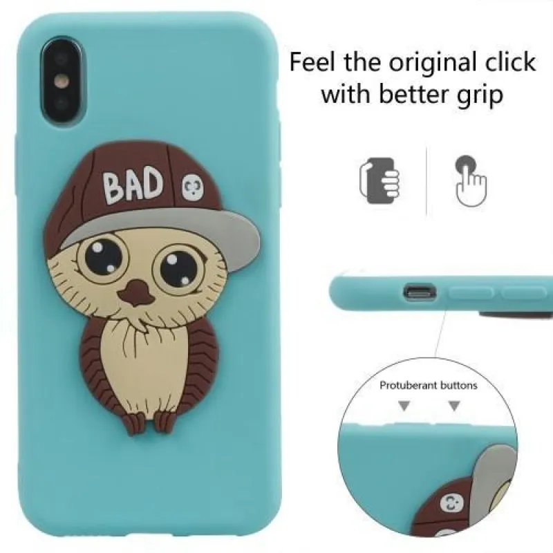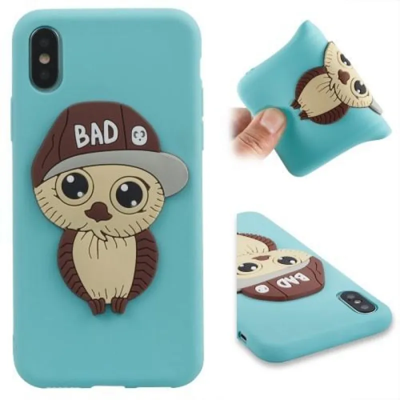 Aranyos zselés tok iPhone X készülékhez világoskék színben, bagoly képpel