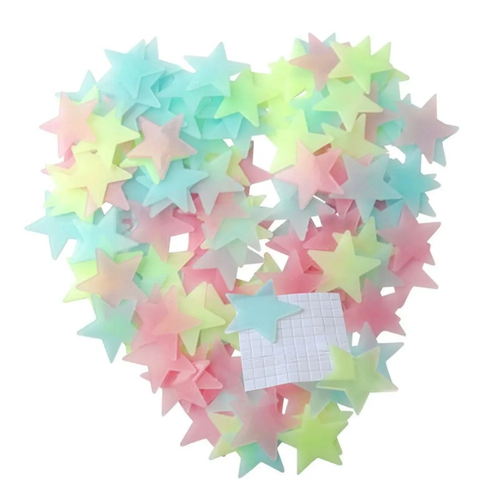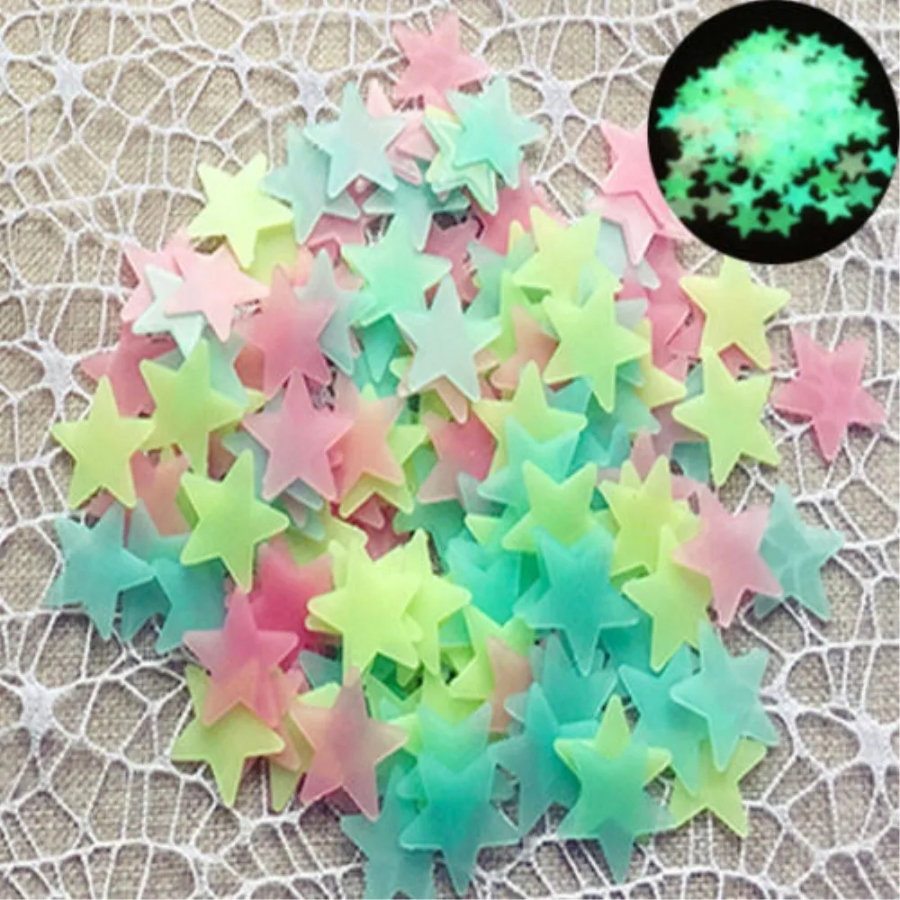 100 darab 3D ragasztó fluoreszkáló csillagok a falon