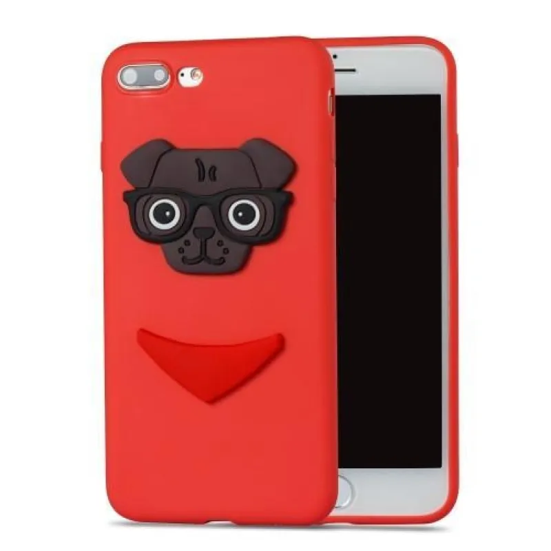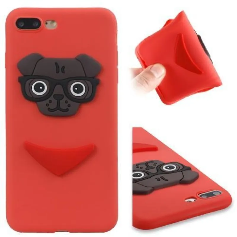 3D kutyás szilikon tok iPhone 8 Plus és iPhone 7 Plus készülékhez - piros színben