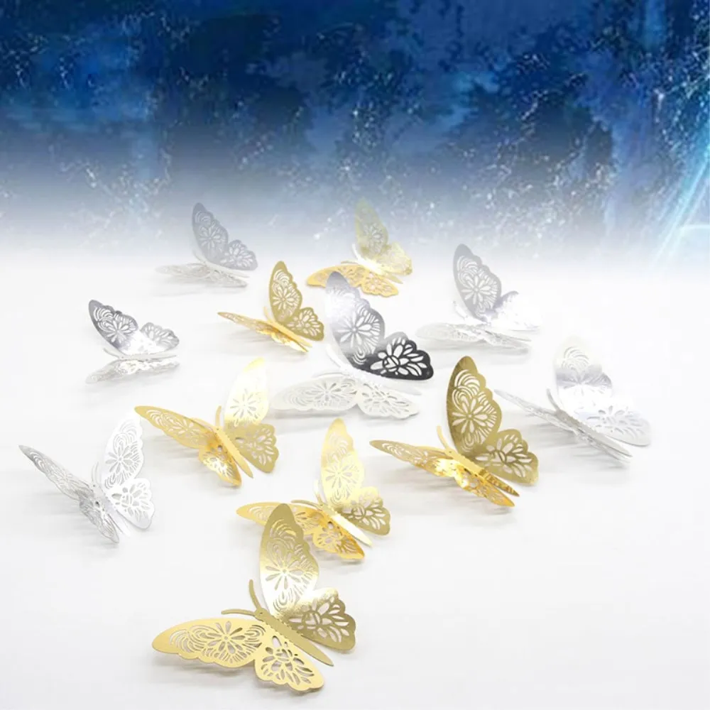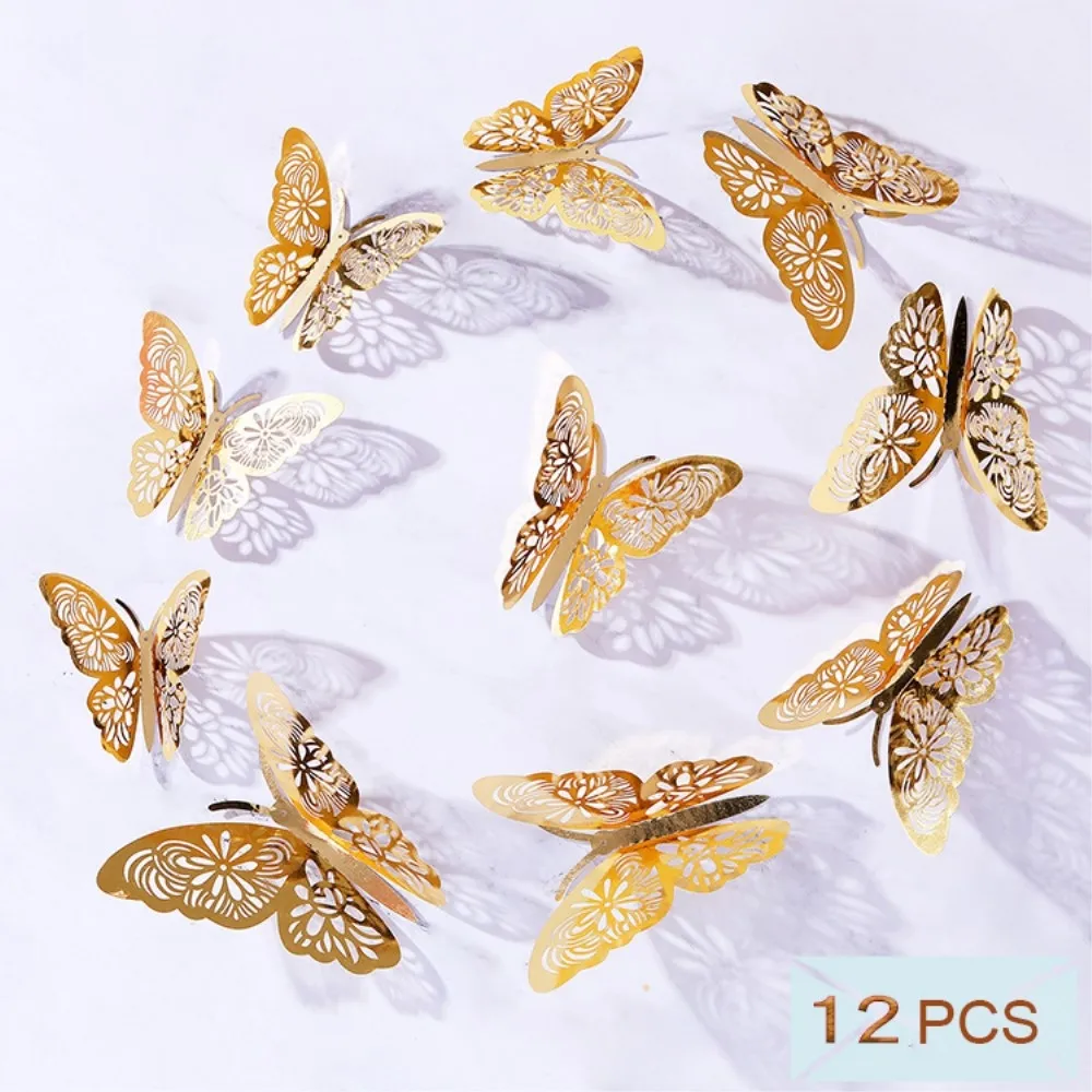 12 darab 3D matrica arany pillangók a falon és a bútorokon