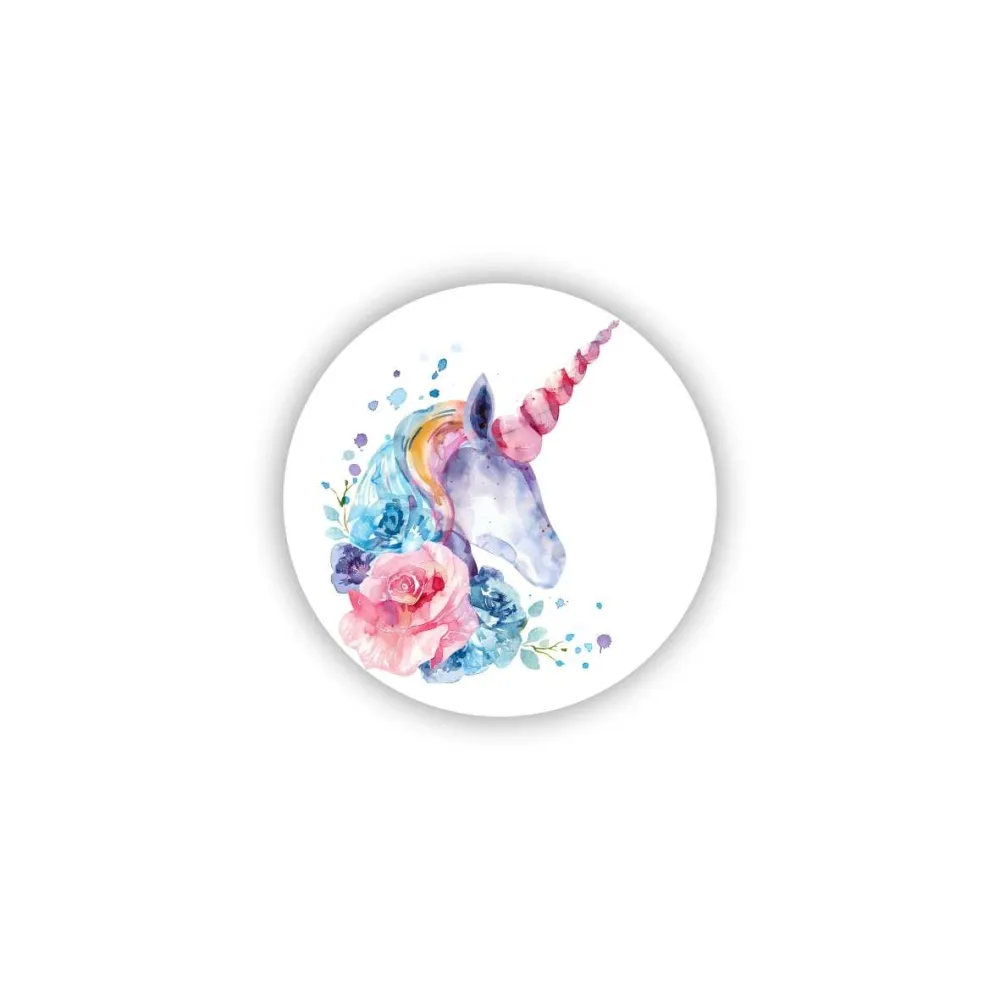 60x60 mm-es kerek mágnes unikornis motívummal akvarell stílusban