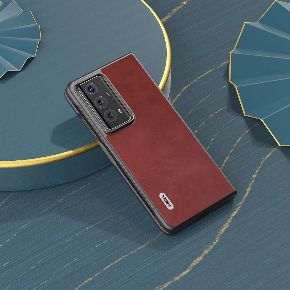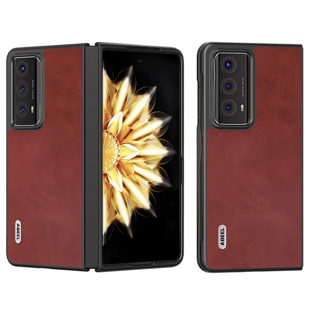 ABEEL Műanyag tok műbőrrel a Honor Magic V2-hez - piros