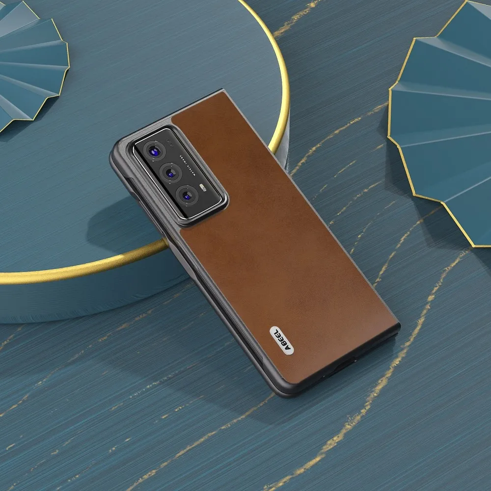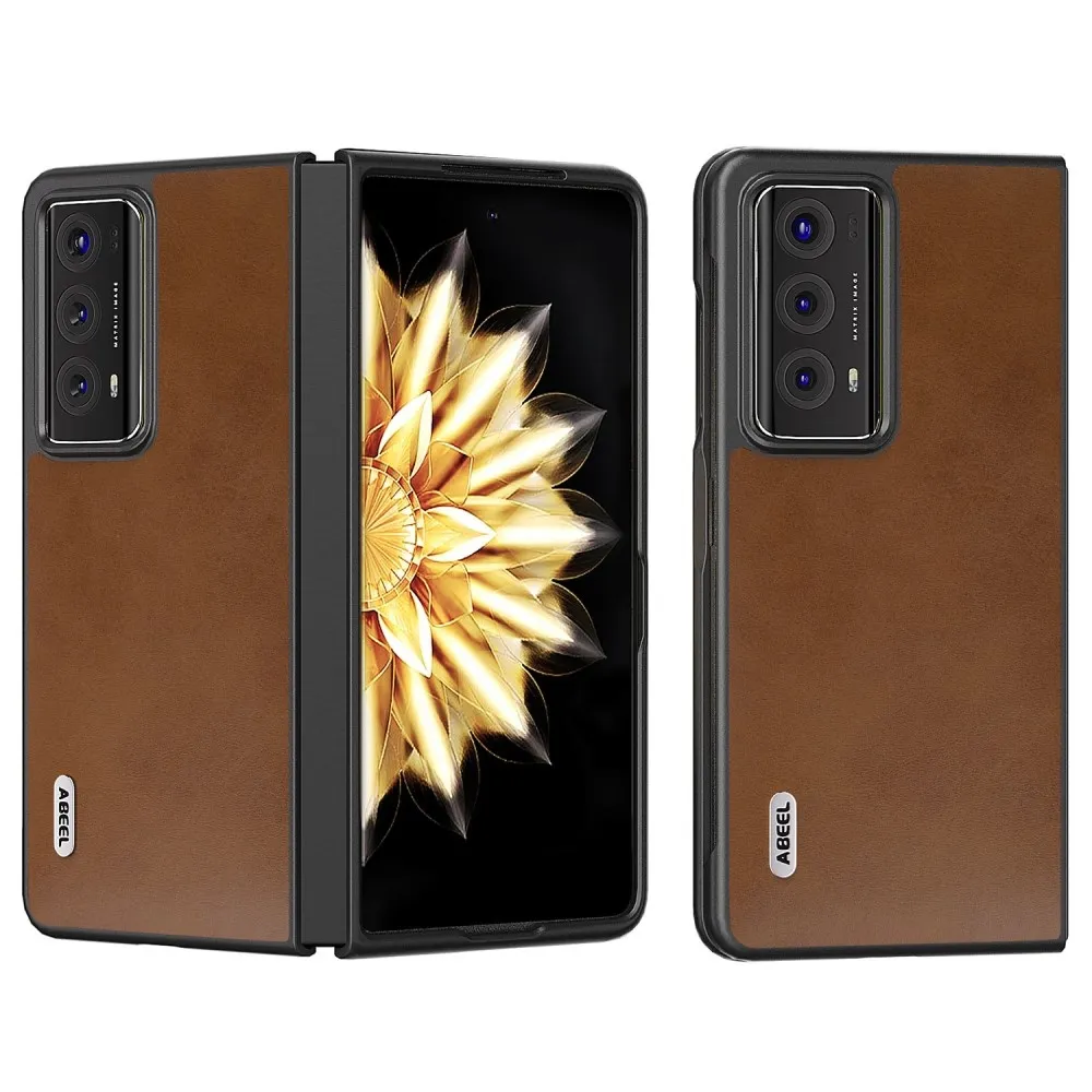 Barna műanyag tok műbőrrel borított ABEEL a Honor Magic V2 számára