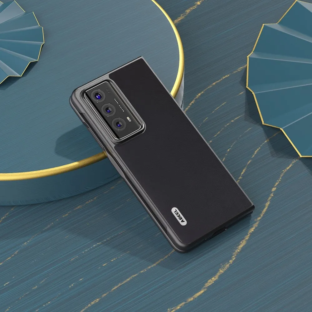 Fekete műanyag tok ABEEL műbőrrel a Honor Magic V2 készülékhez