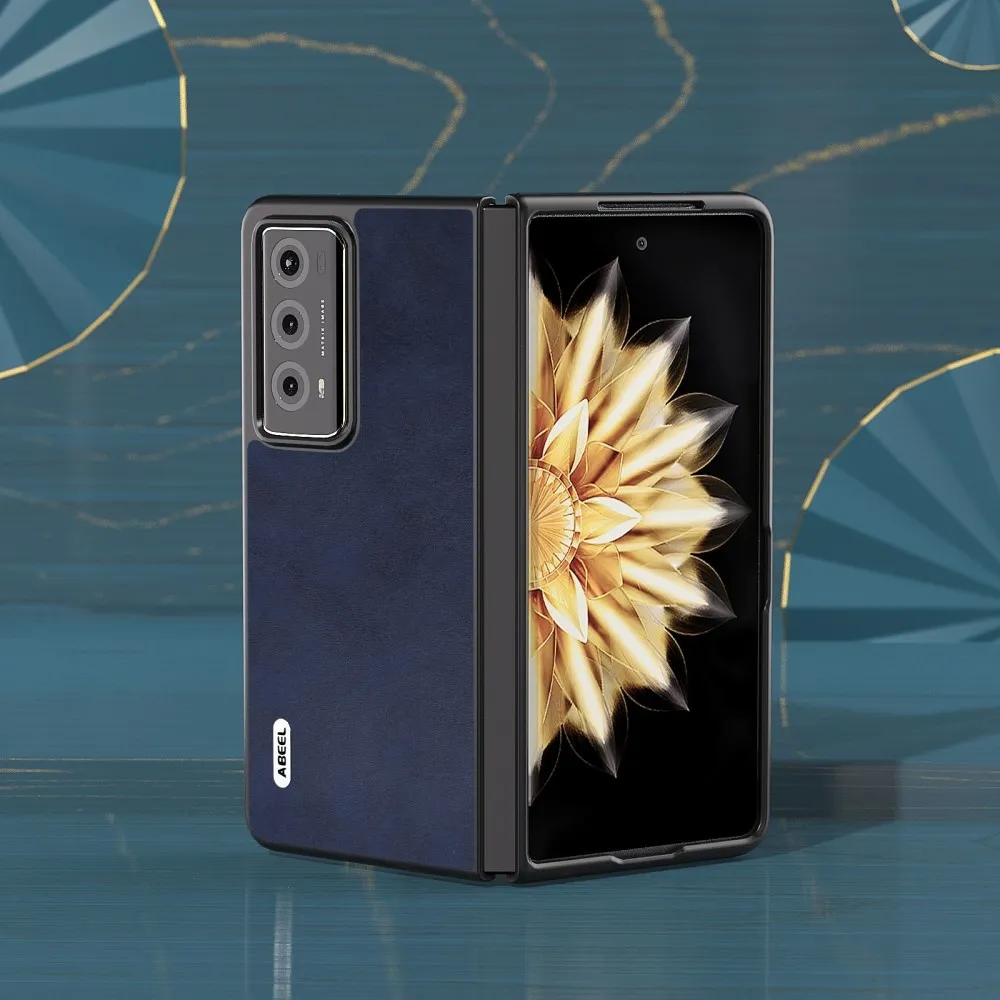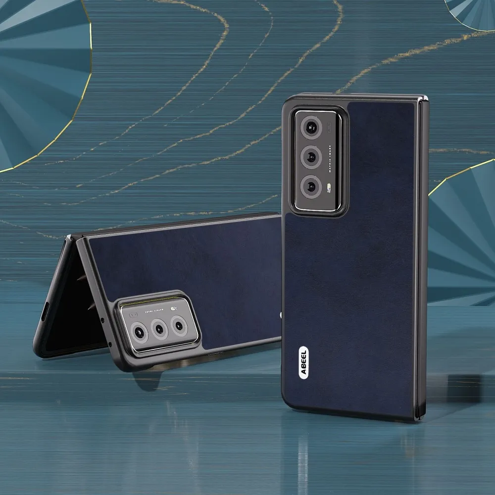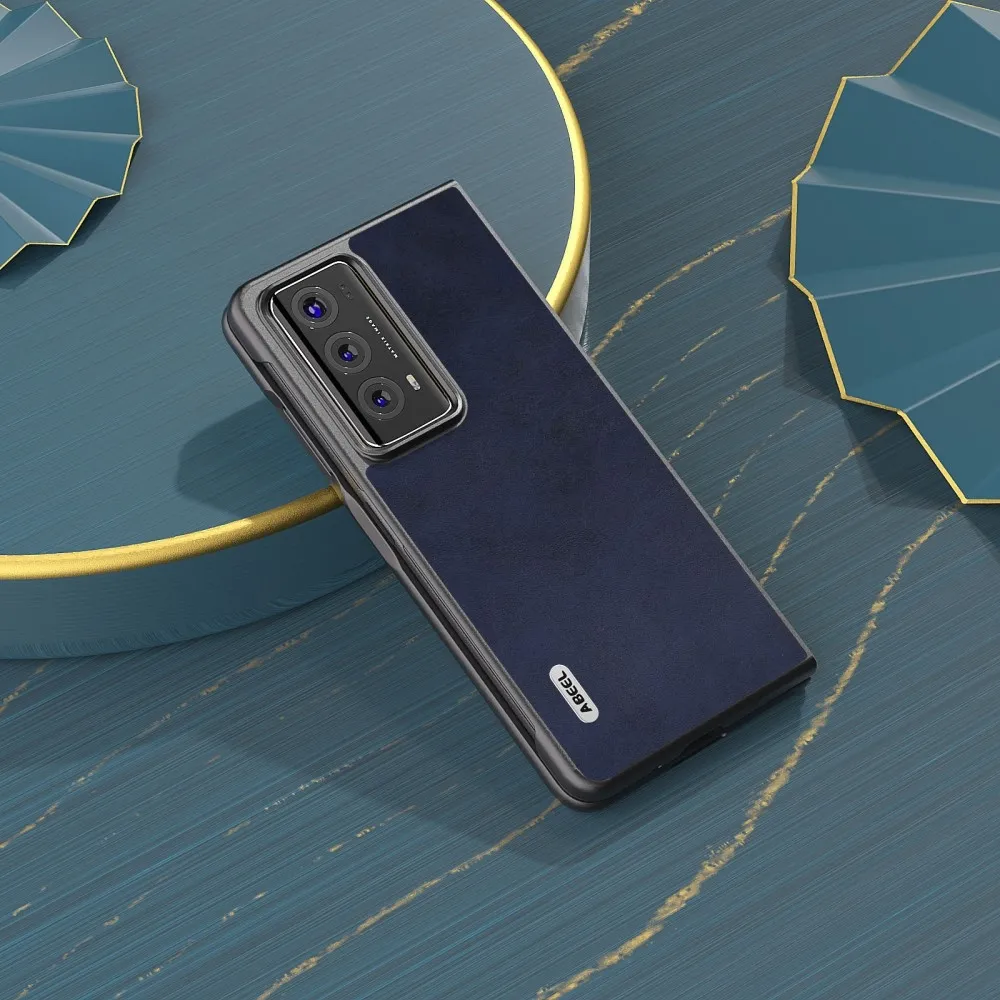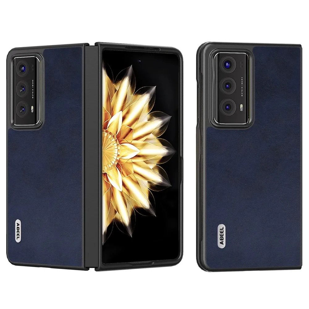 Sötétkék műanyag tok műbőrrel ABEEL a Honor Magic V2 számára