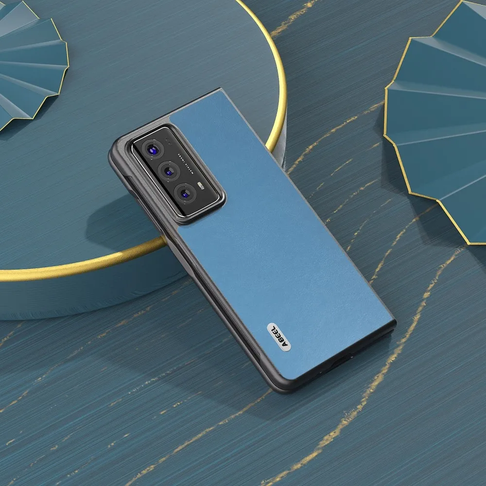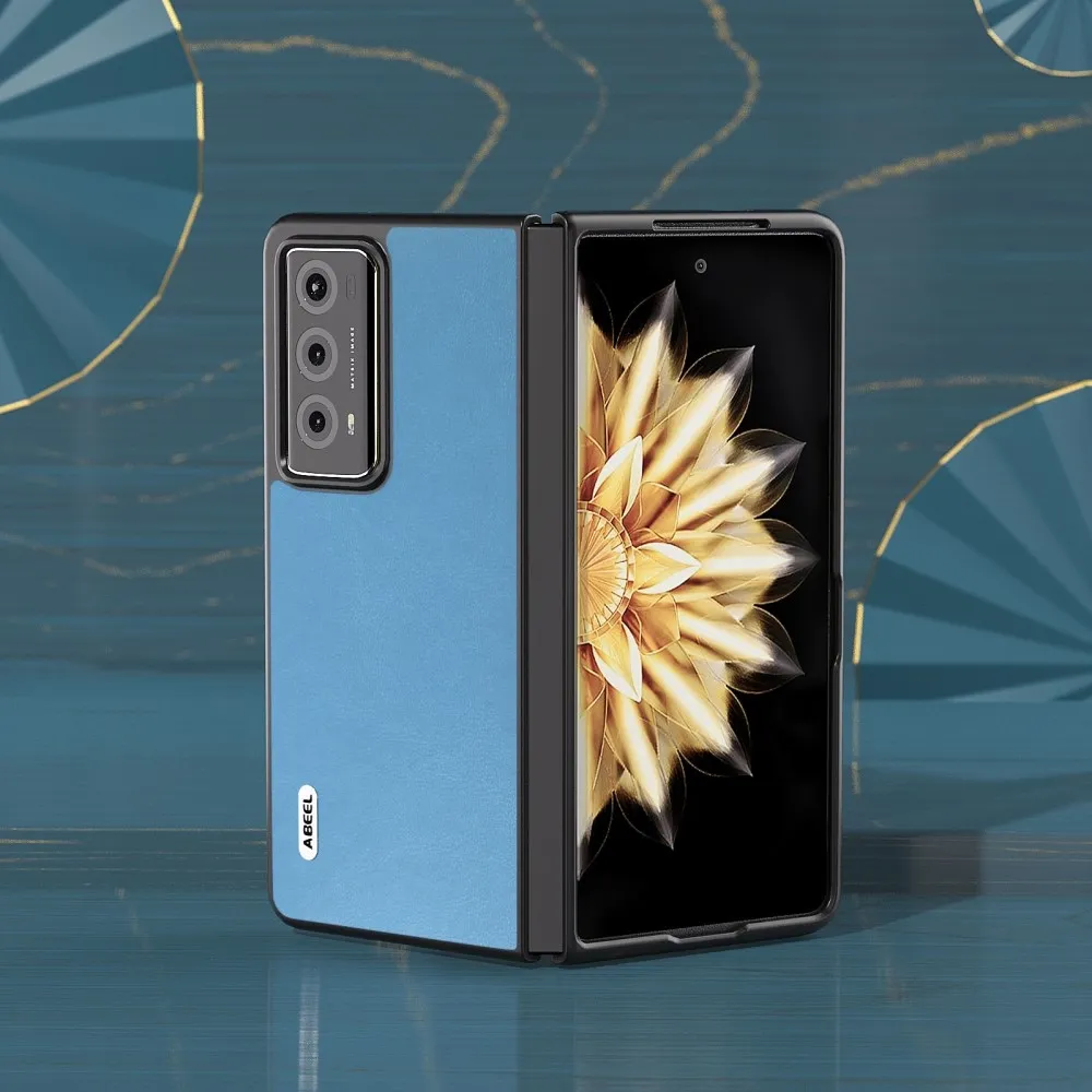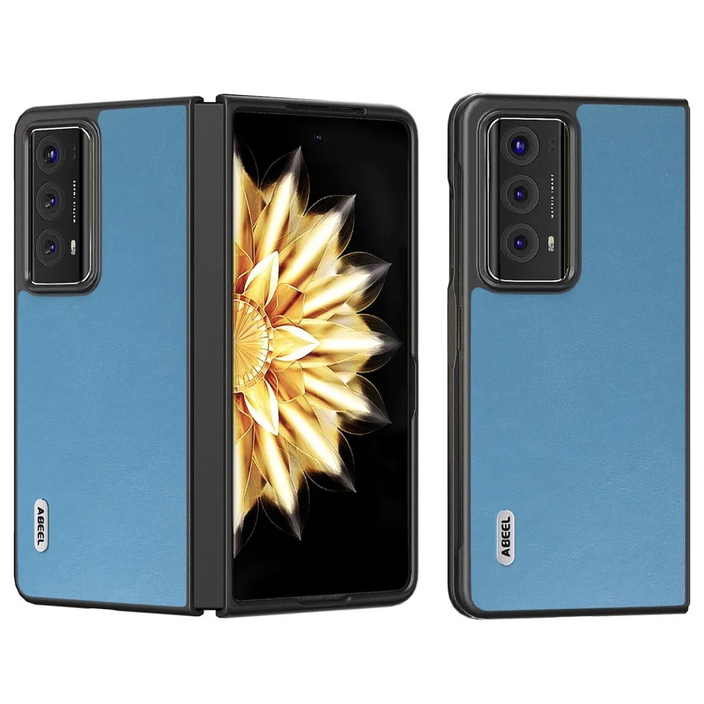Világoskék műanyag tok ABEEL műbőrrel Honor Magic V2 készülékhez