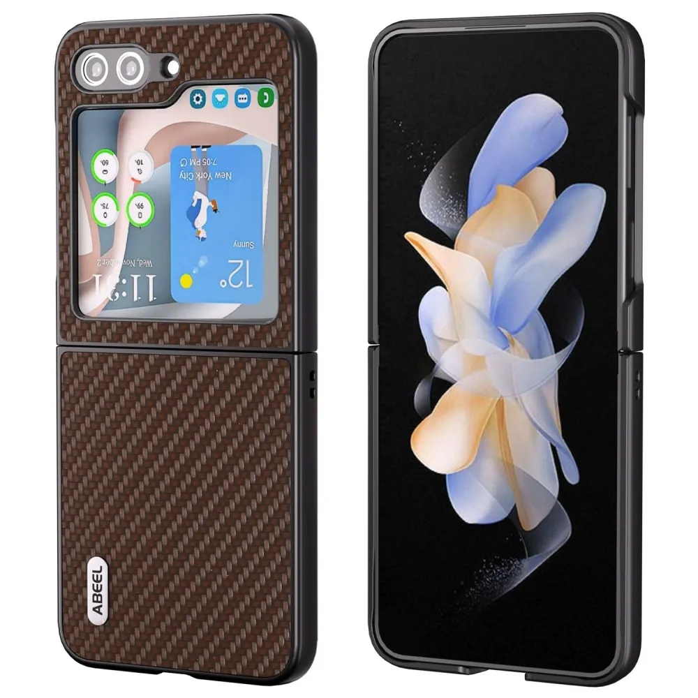 ABEEL műanyag tok műbőrrel a Samsung Galaxy Z Flip6 5G készülékhez - sötétbarna színben