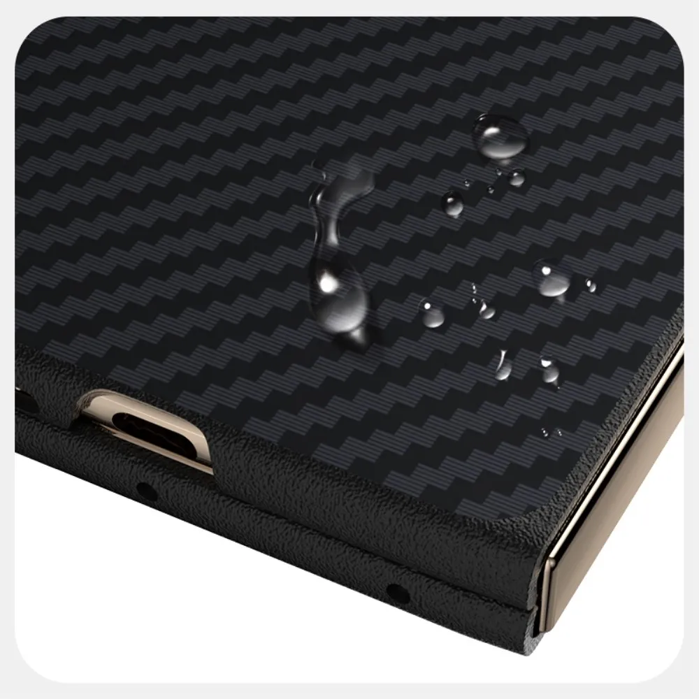 ✅【Prémium anyagok kombinációja】 Ez a tok PC héjból, TPU szélekből, alumíniumötvözetből, műbőrből és 6D nyomtatott szénszálas mintázatból készült, luxus megjelenést és érzetet biztosítva tartós konstrukcióval.