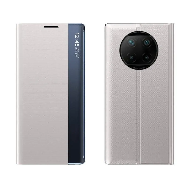 Ablak PU bőr pénztárca tok átlátszó ablakkal a Xiaomi Redmi Note 9T 5G számára - szürke