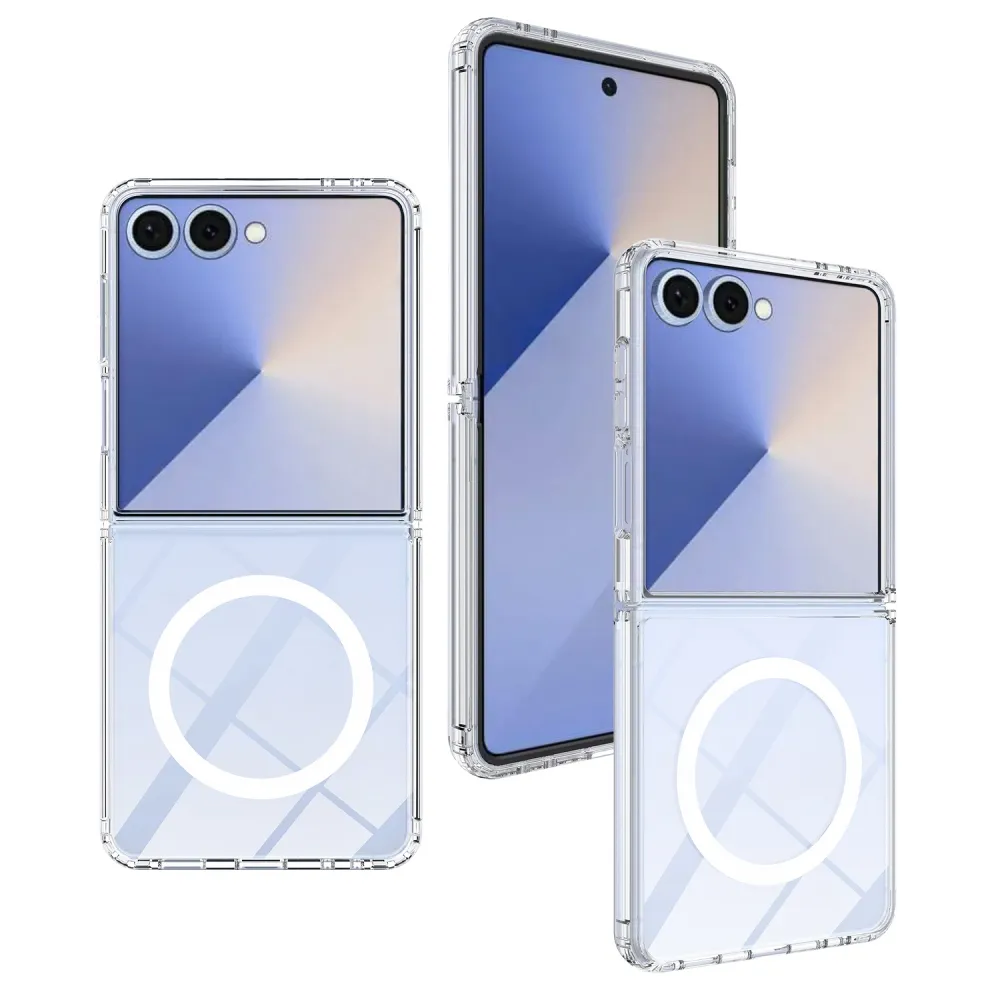 Átlátszó akril zselés borítás szilárd hátlappal és MagSafe a Samsung Galaxy Z Flip7 5G készüléken