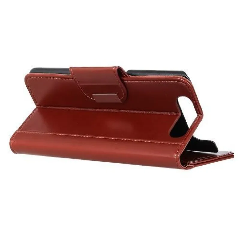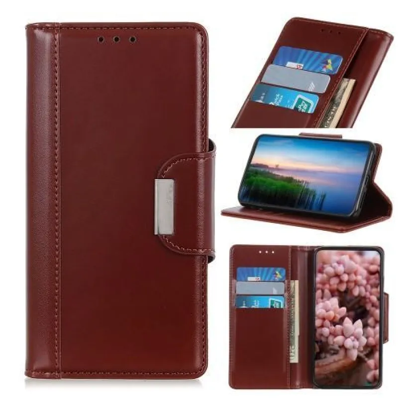 Állvány elegáns PU bőr pénztárca tok Samsung Galaxy A80-hoz - sötétbarna