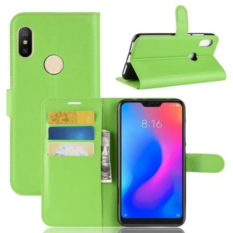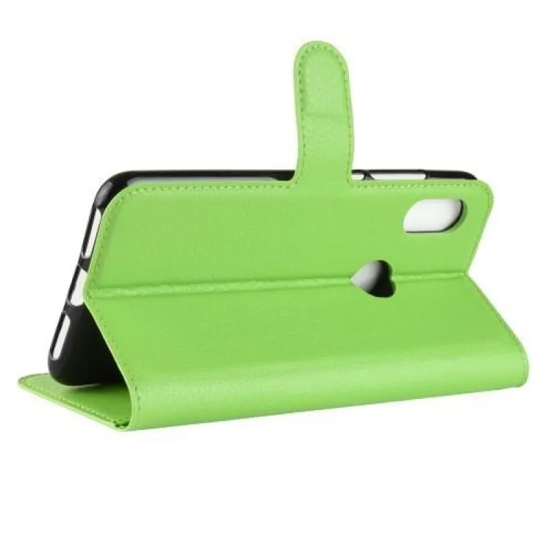 Állvány PU bőr pénztárca tok a Xiaomi Redmi Note 6 Pro-hoz - zöld