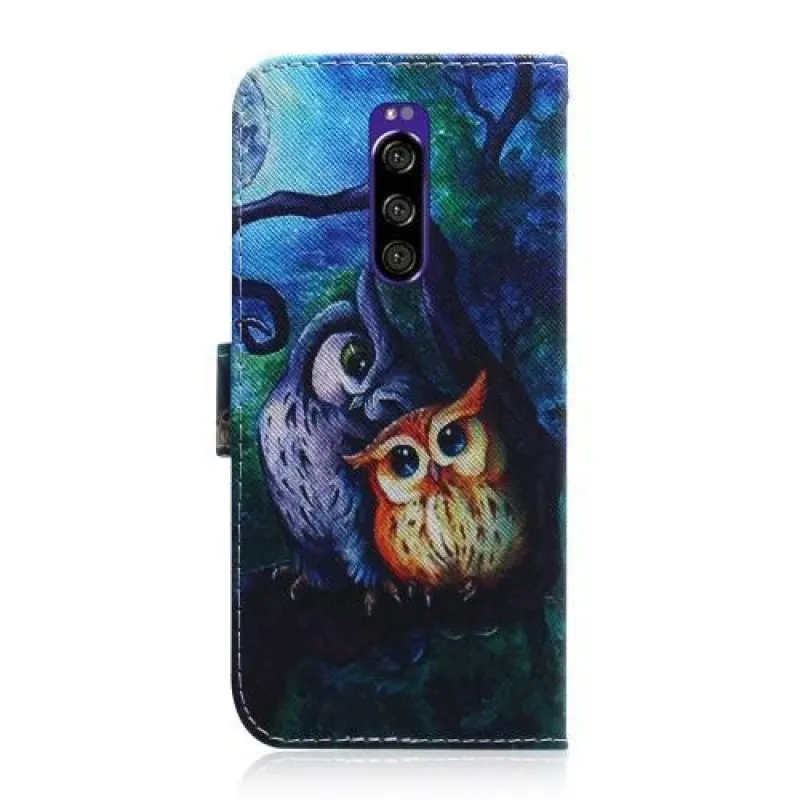Állvány PU bőr pénztárca tok Sony Xperia 1 - bagoly