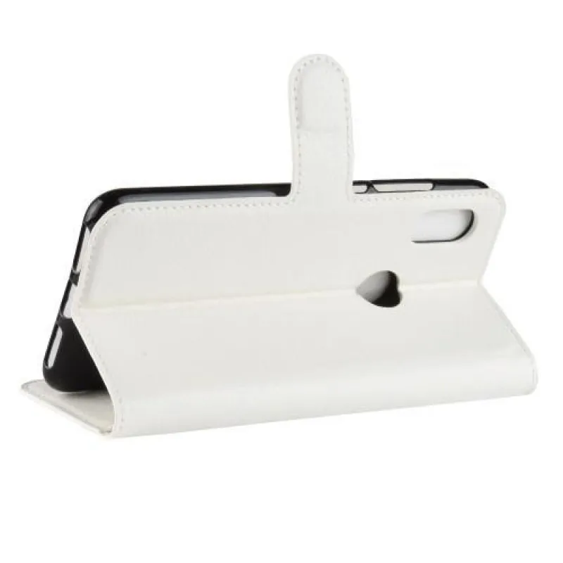 Állvány PU bőr pénztárca tok Xiaomi Redmi Note 6 Pro - fehér