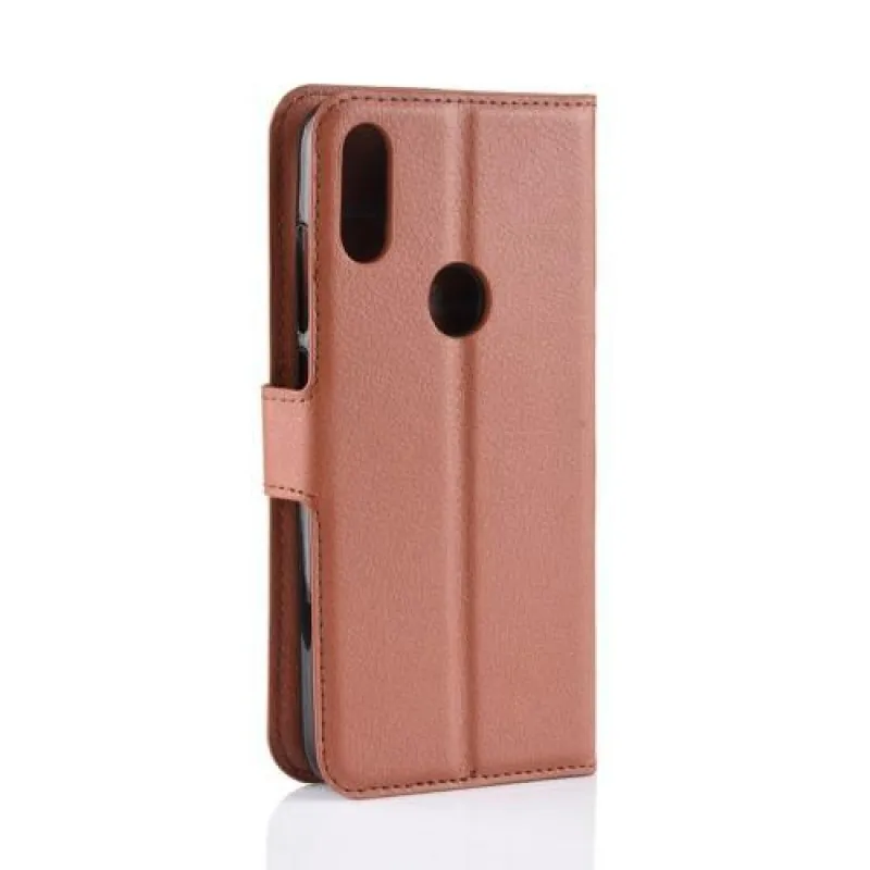 Állvány PU bőr pénztárca tok Xiaomi Redmi Note 7-hez - barna