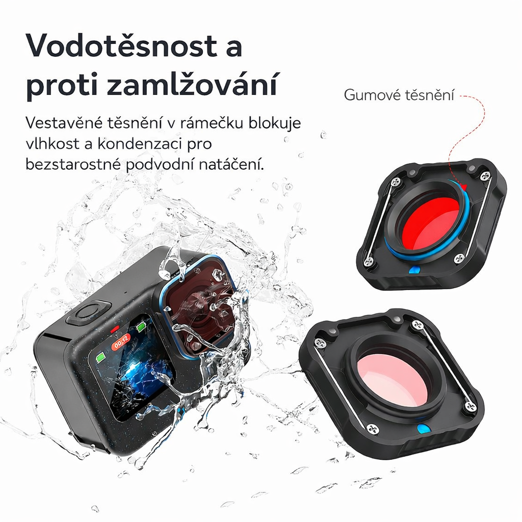 A szűrő GoPro Hero 13, 12, 11, 11 Mini, 10 és 9 akciókamerákkal használható, és ideális kiegészítő a víz alatti felvételek minőségének javításához hobbi és sportbúvárkodás során.