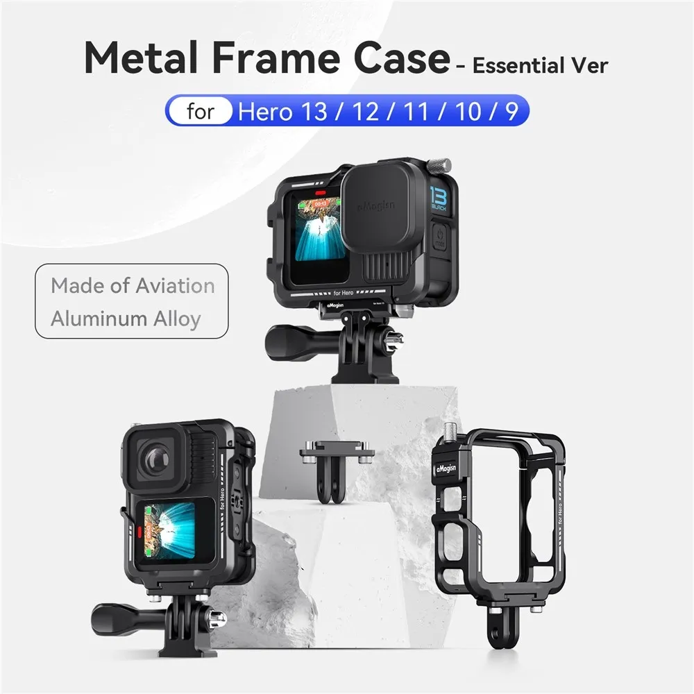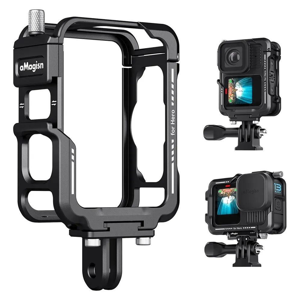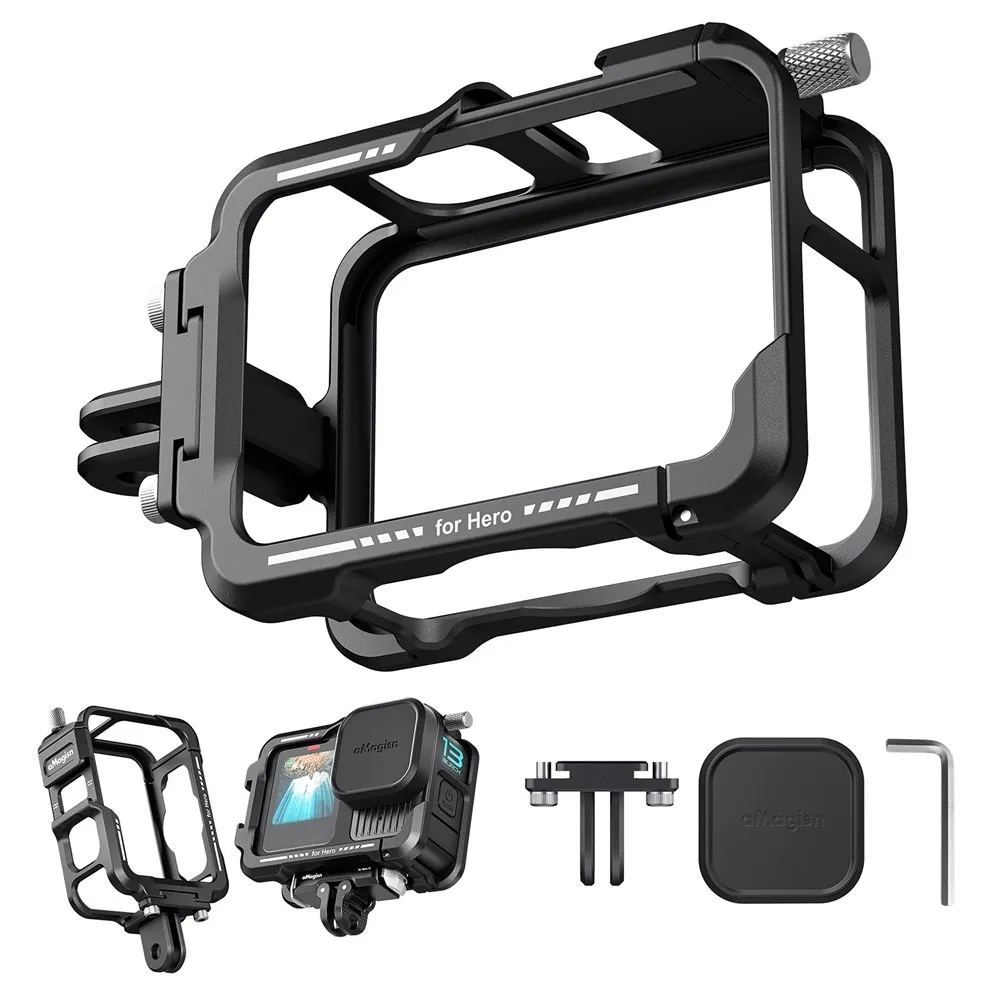 AMAGISN fém védőkeret GoPro Hero 13, 12, 11, 10 és 9 kamerákhoz készült, és fokozott védelmet biztosít nehéz körülmények közötti használat során. A masszív fém kialakítás védi a kamera házát az ütésektől, leejtéstől és mechanikai sérülésektől kerékpározás, sportolás vagy szabadtéri tevékenységek közben. A precíz kialakítás stabil illeszkedést biztosít, miközben teljes hozzáférést nyújt a gombokhoz, kijelzőhöz, csatlakozókhoz és az objektívhez.