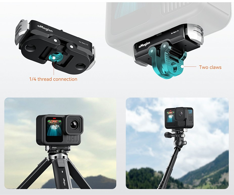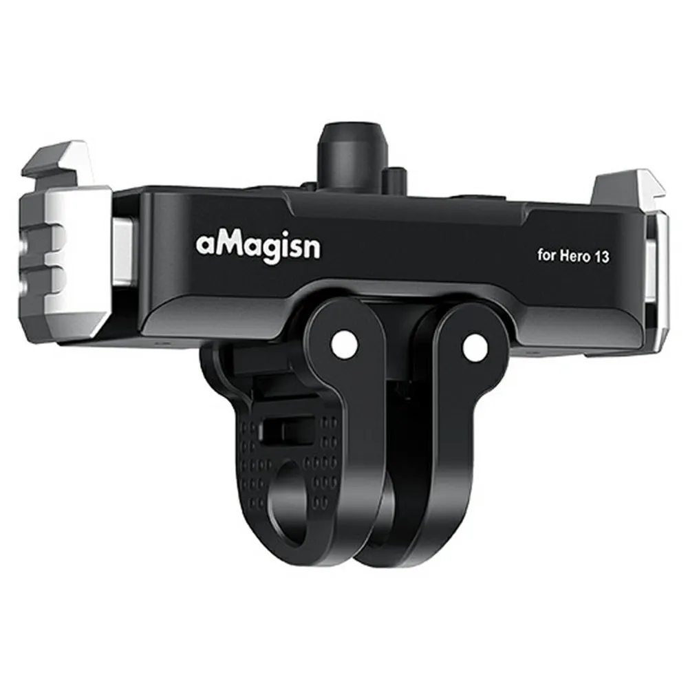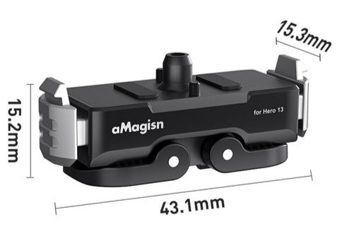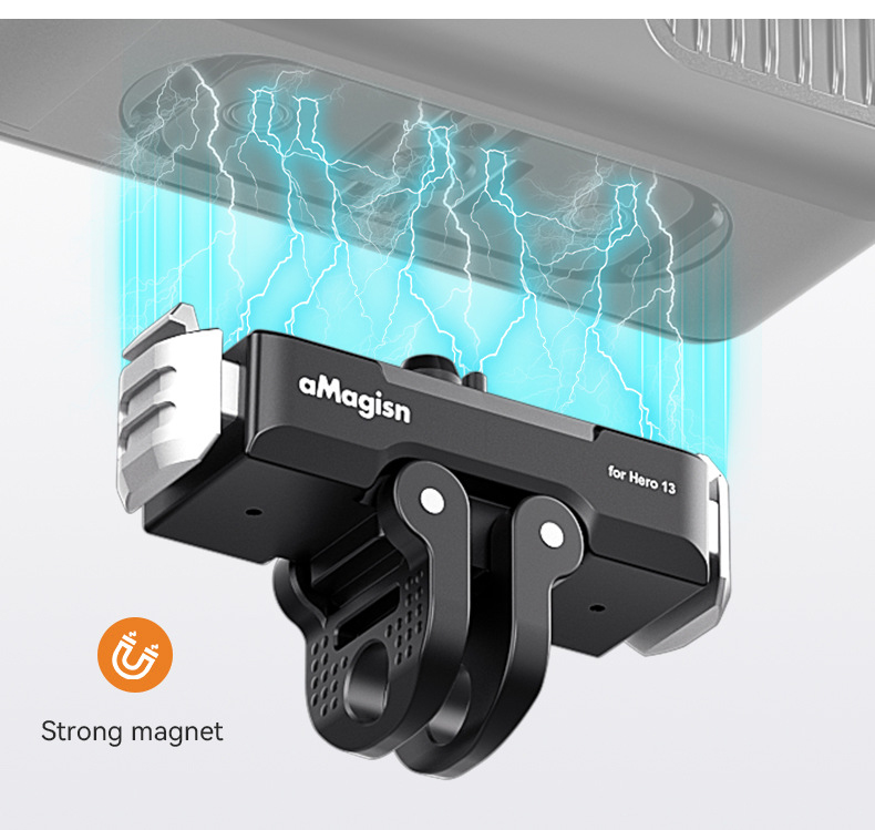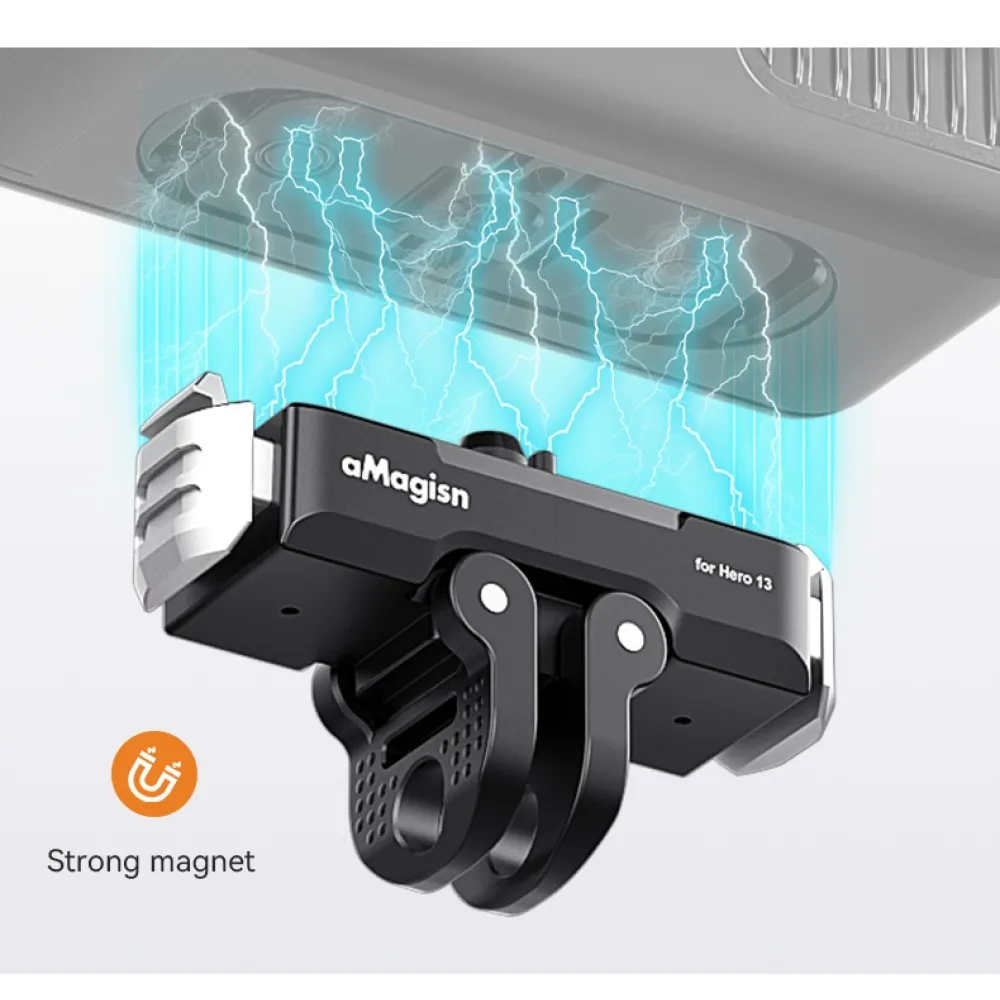 AMAGISN mágneses gyorskioldó tartó GoPro Hero13 kamerához fém alaplappal praktikus kiegészítő, amely lehetővé teszi az akciókamera gyors és biztonságos rögzítését hosszadalmas csavarozás nélkül. A mágneses rendszer azonnali csatlakoztatást tesz lehetővé az alaphoz, míg a mechanikus rögzítés stabil tartást biztosít mozgás vagy dinamikus tevékenység közben is. A precíz kialakításnak köszönhetően a tartó tökéletesen illeszkedik a GoPro Hero13 modellhez és stabilitást biztosít felvétel közben.