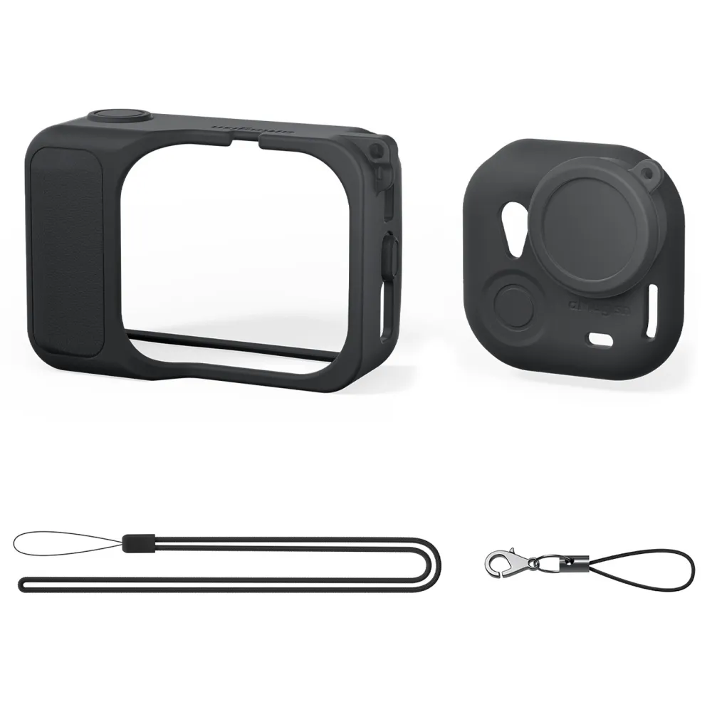 AMAGISN szilikon tok lencsevédő kupakkal és nyakpánttal Insta360 GO Ultra fekete megbízható védelmet biztosít a kamerának mindennapi használat és szabadtéri tevékenységek során. A puha és rugalmas szilikon pontosan illeszkedik a készülékhez, elnyeli az ütődéseket, és segít megvédeni a felületet a karcolásoktól, portól és kisebb esésektől. A precíz kialakításnak köszönhetően minden gomb és csatlakozó teljes mértékben hozzáférhető marad.