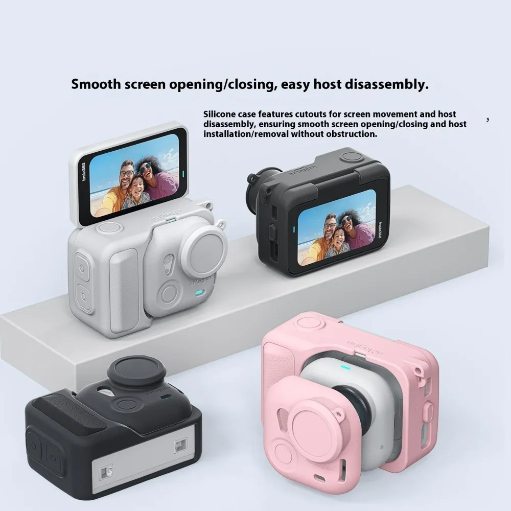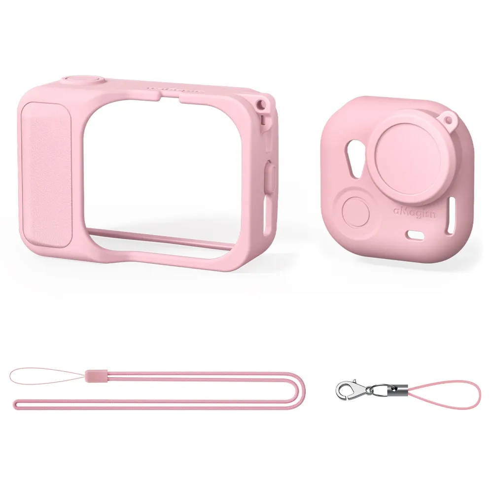 AMAGISN szilikon védőtok objektívsapkával és nyakpánttal Insta360 GO Ultra kamerához rózsaszín megbízható védelmet nyújt a kamerának mindennapi használat és kültéri tevékenységek során. A puha és rugalmas szilikon pontosan illeszkedik a készülékhez, elnyeli az ütődéseket, és segít megvédeni a felületet a karcolásoktól, portól és kisebb esésektől. A precíz kialakítás biztosítja, hogy minden gomb és csatlakozó teljes mértékben hozzáférhető maradjon.