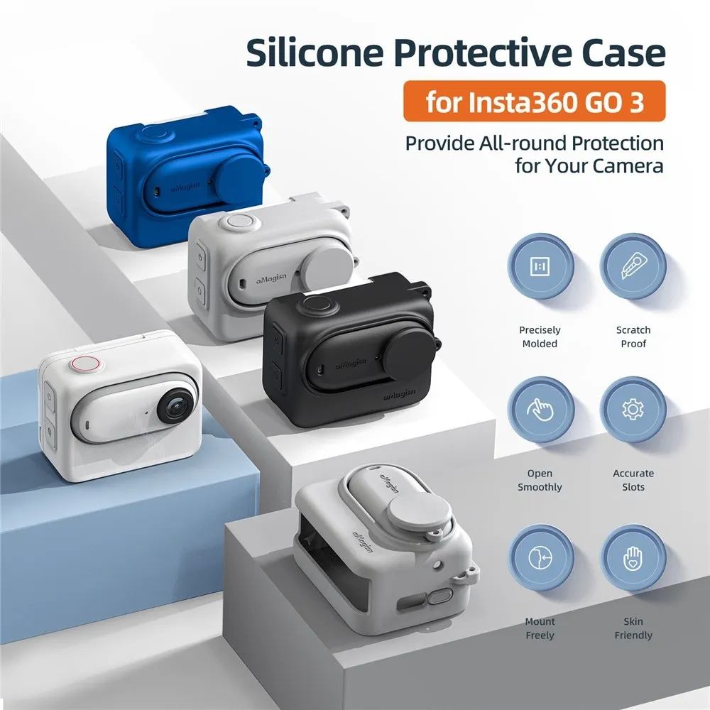 AMAGISN szilikon védőtok az Insta360 GO 3S kamerához készült, és megbízható védelmet nyújt az ütődések, karcolások és a mindennapi használat során keletkező kopás ellen. A pontos kialakítás stabilan rögzíti a kamerát, miközben teljes hozzáférést biztosít a gombokhoz, csatlakozókhoz és az objektívhez. A tok segít minimalizálni a sérülés kockázatát esés vagy aktív használat közben.