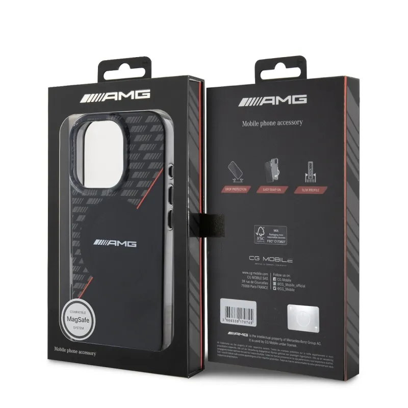 AMG Rhombs MagSafe hátlap iPhone 16 Pro fekete/piros színű borítóhoz