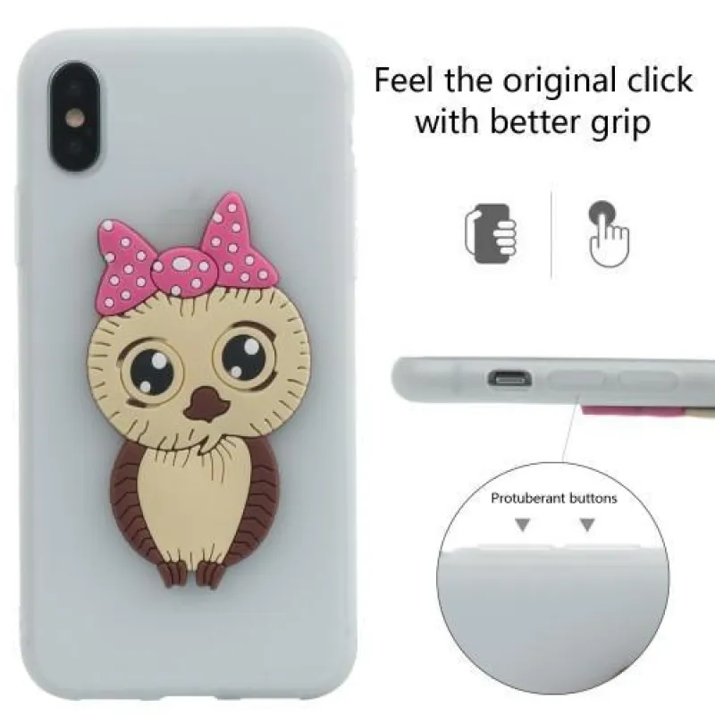 Gyengéd zselés tok iPhone X készülékhez fehér színben, bagoly képpel