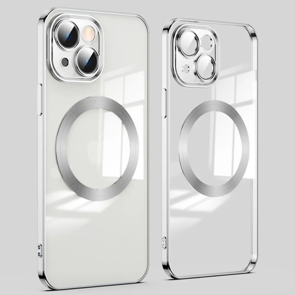 Átlátszó tok kameravédelemmel és MagSafe támogatással iPhone 14 készülékhez - ezüst színben