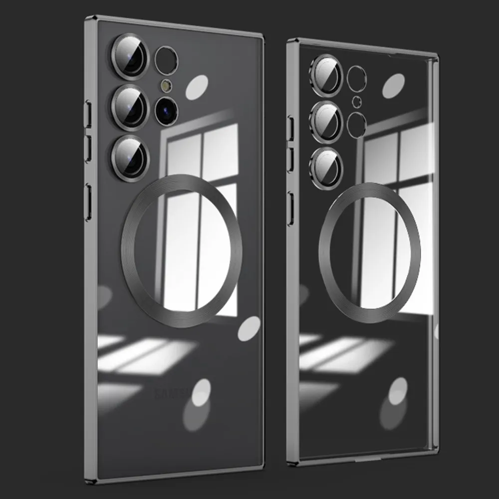 Átlátszó tok kameravédelemmel és MagSafe támogatással Samsung Galaxy S23 Ultra készülékhez - fekete
