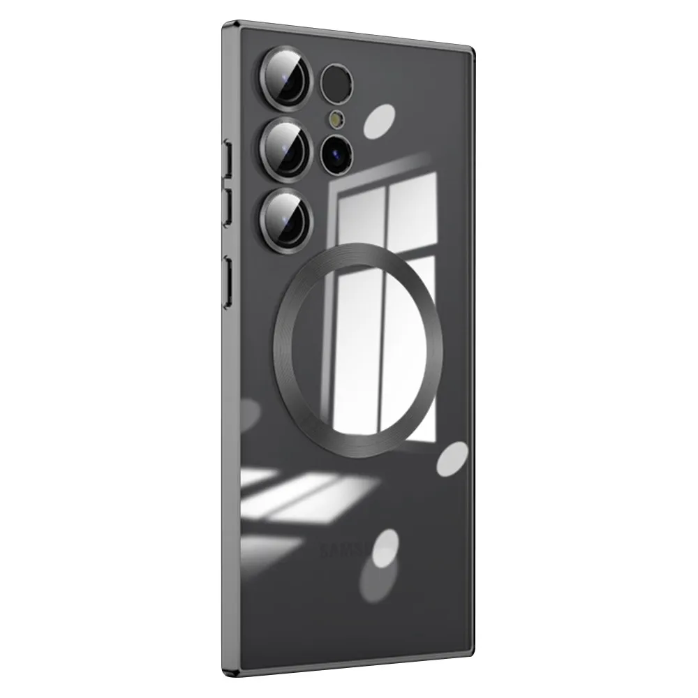 Fekete átlátszó borítás kameravédelemmel és MagSafe támogatással Samsung Galaxy S23 Ultra készülékhez