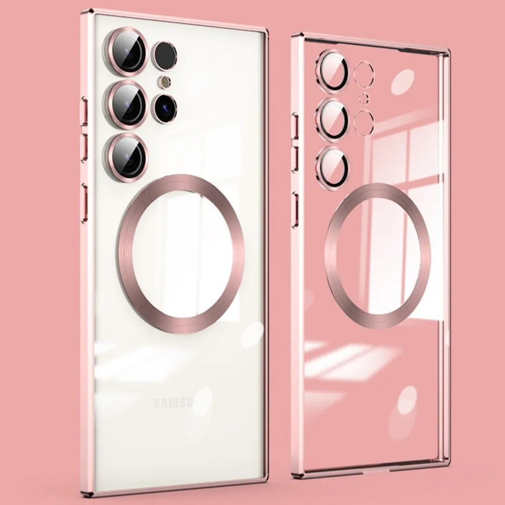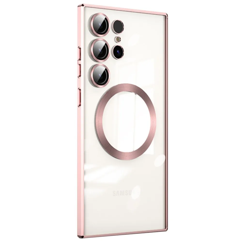 Átlátszó tok kameravédelemmel és MagSafe támogatással Samsung Galaxy S23 Ultra készülékhez - rózsaarany színben