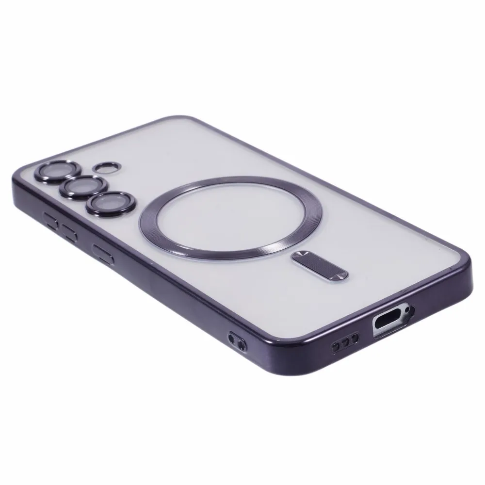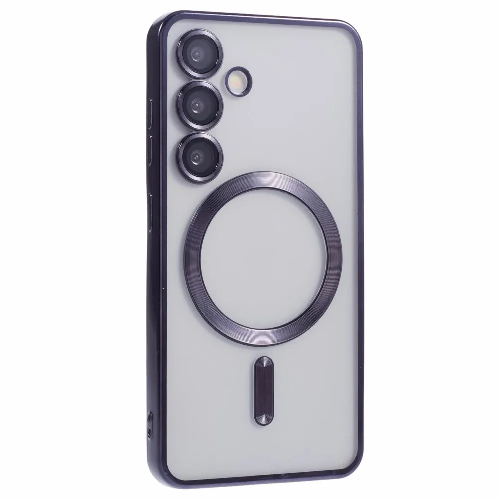 Átlátszó tok kameravédelemmel és MagSafe támogatással Samsung Galaxy S25+ készülékhez - fekete