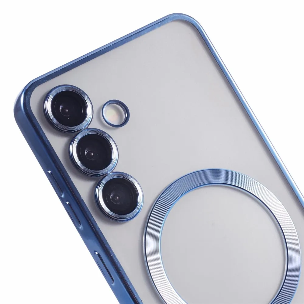 Kék átlátszó borítás kameravédelemmel és MagSafe támogatással a Samsung Galaxy S25+ készülékhez