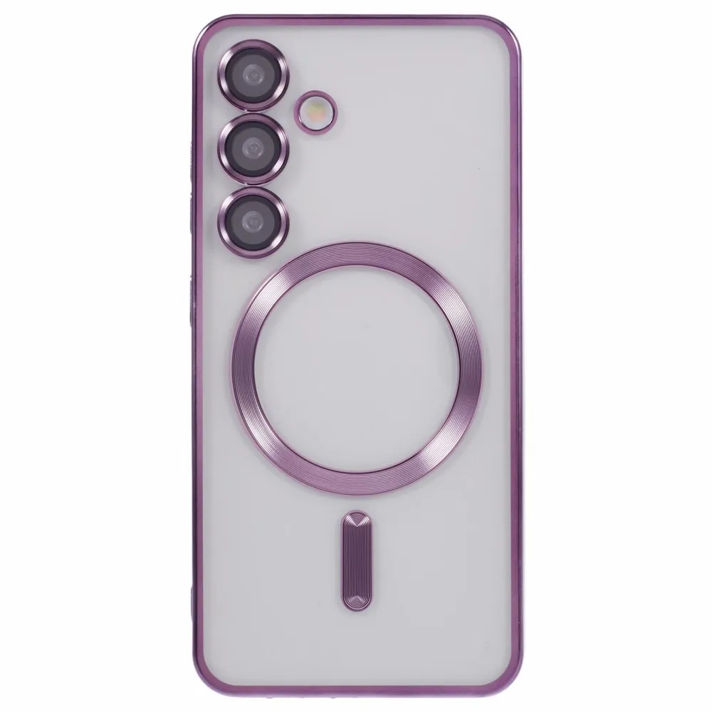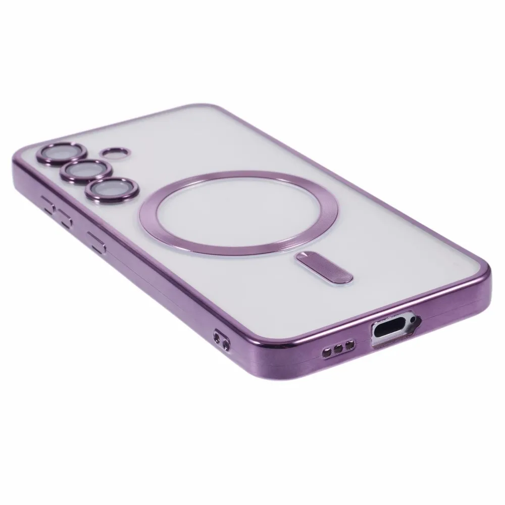 Átlátszó tok kameravédelemmel és MagSafe támogatással Samsung Galaxy S25+ készülékhez - sötétlila színben