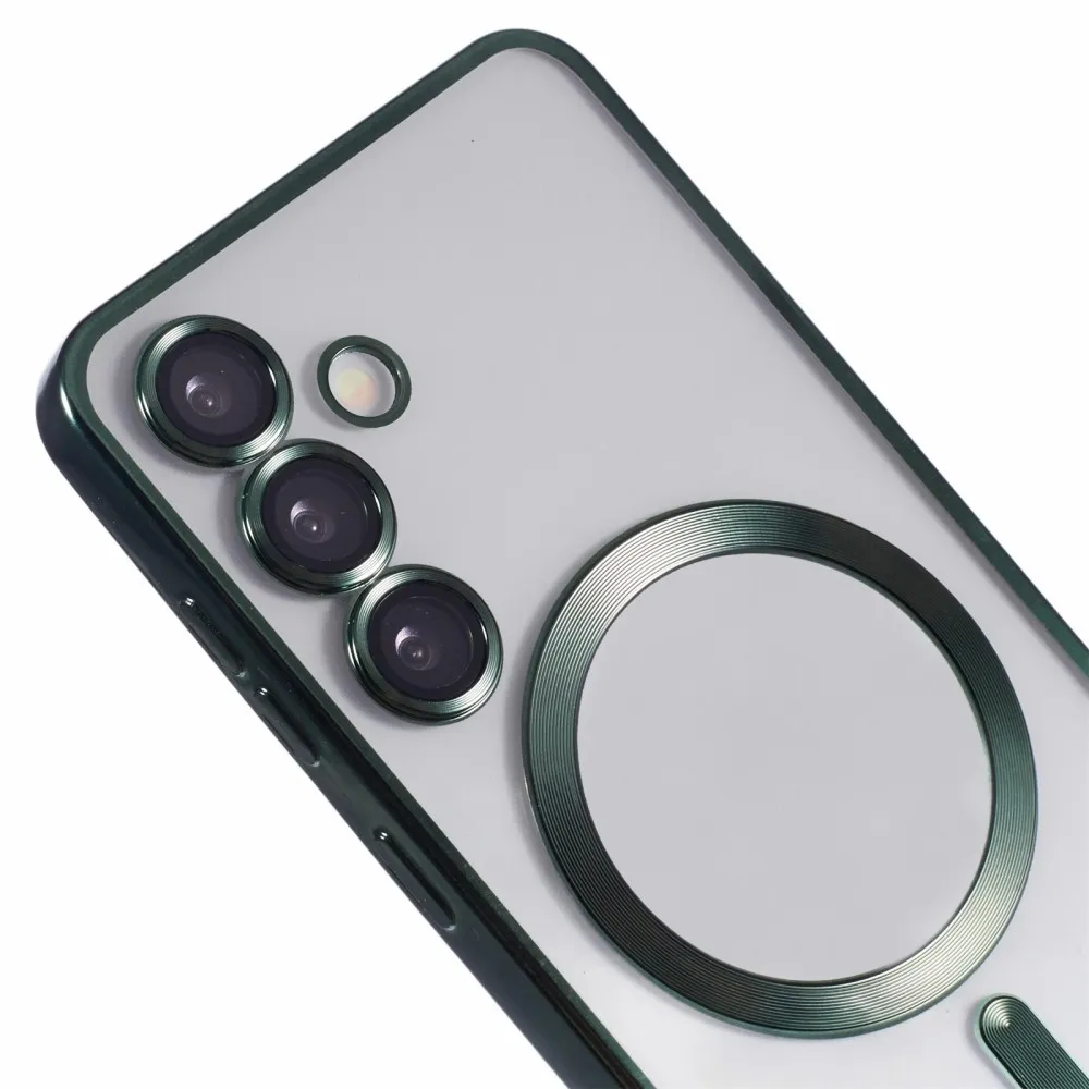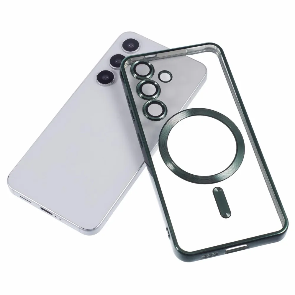 Átlátszó tok kameravédelemmel és MagSafe támogatással Samsung Galaxy S25 készülékhez - zöld