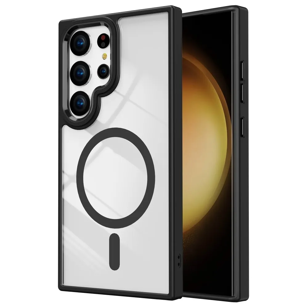 Átlátszó zselés tok fix hátlappal és MagSafe funkcióval a Samsung Galaxy S24 Ultra készülékre - fekete