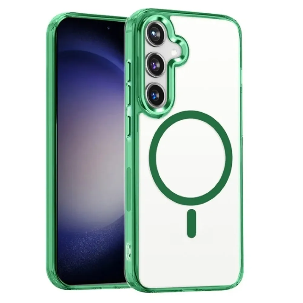 Átlátszó zselés tok fix hátlappal és MagSafe funkcióval Samsung Galaxy S24 készülékhez - zöld