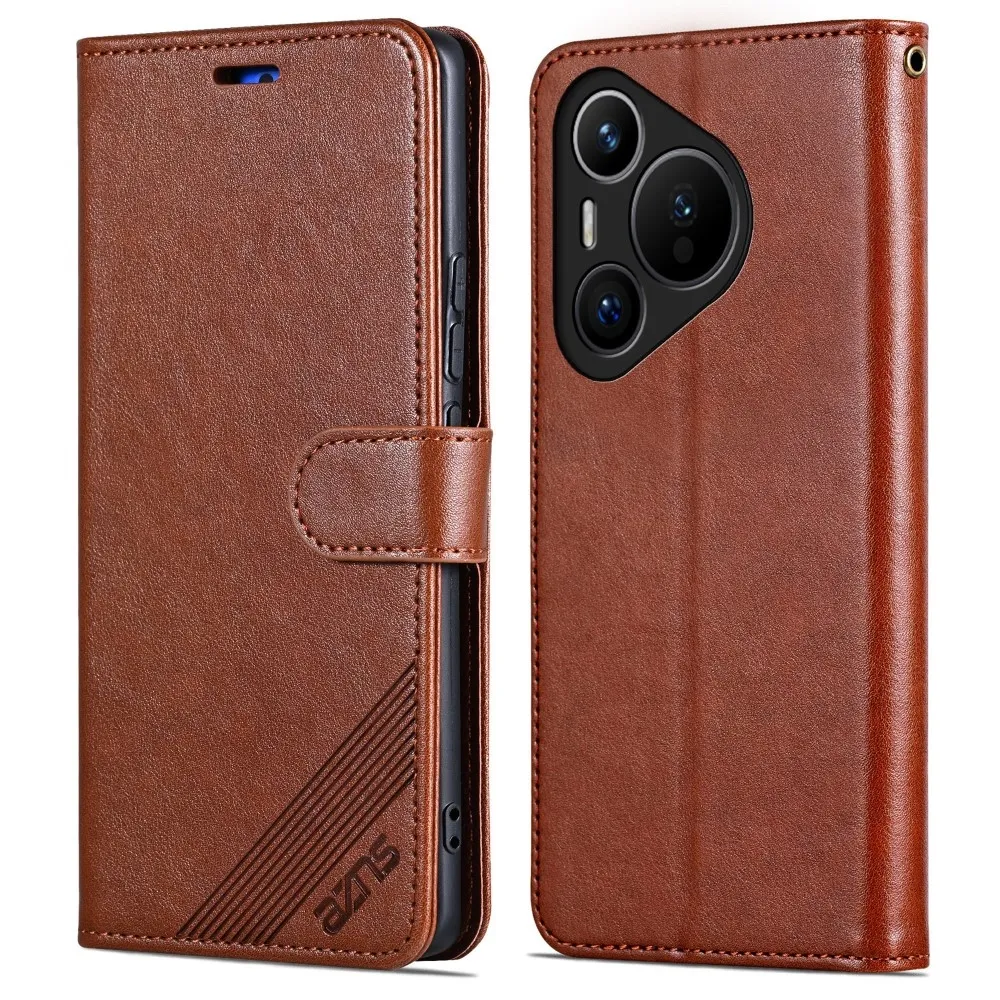 ✅【Teljes védelem】AZNS pénztárca tok Huawei Pura 70-hez barna színben. Prémium műbőr TPU belső tokkal, amely átfogó védelmet nyújt a telefonnak, tartósságot biztosít és megakadályozza a karcolásokat