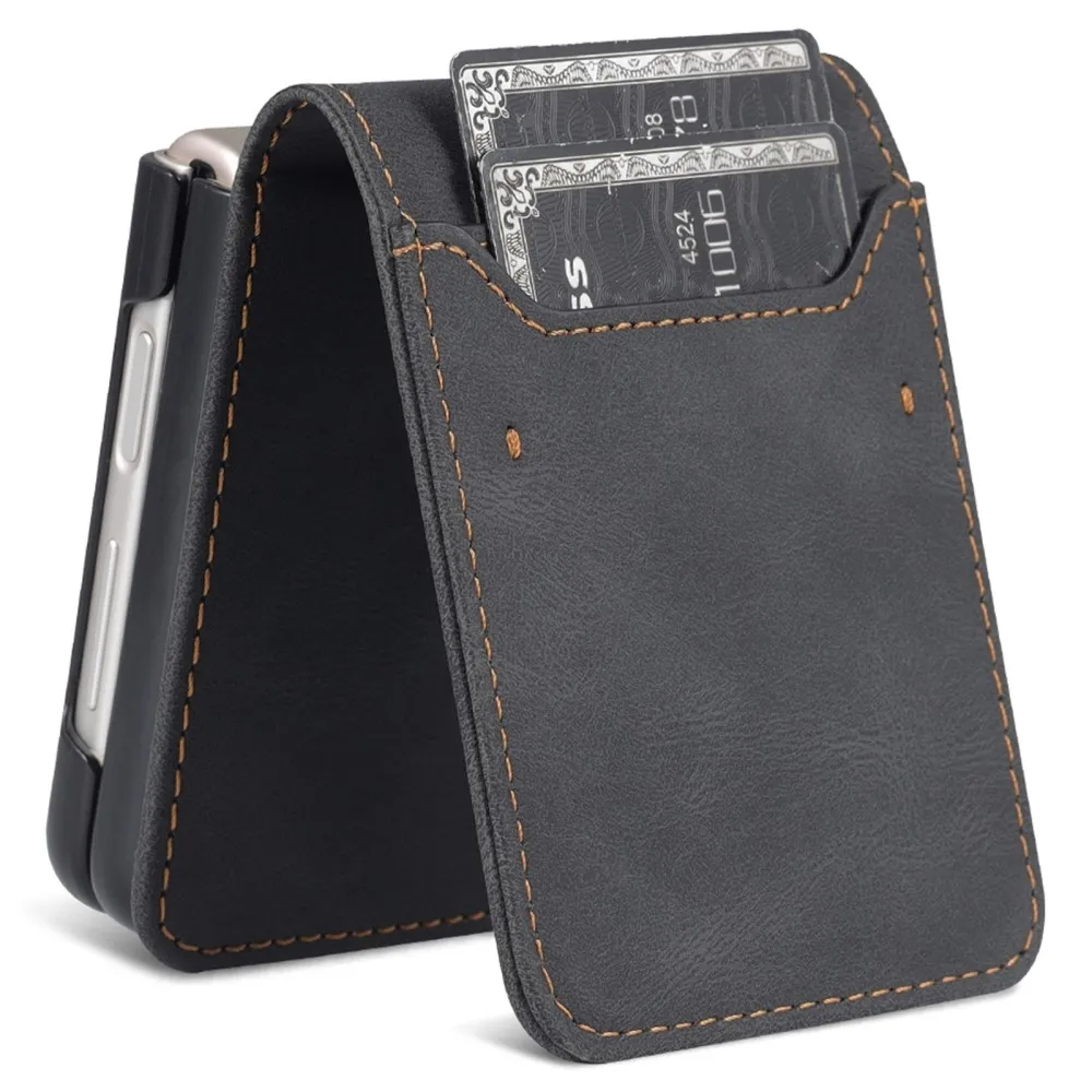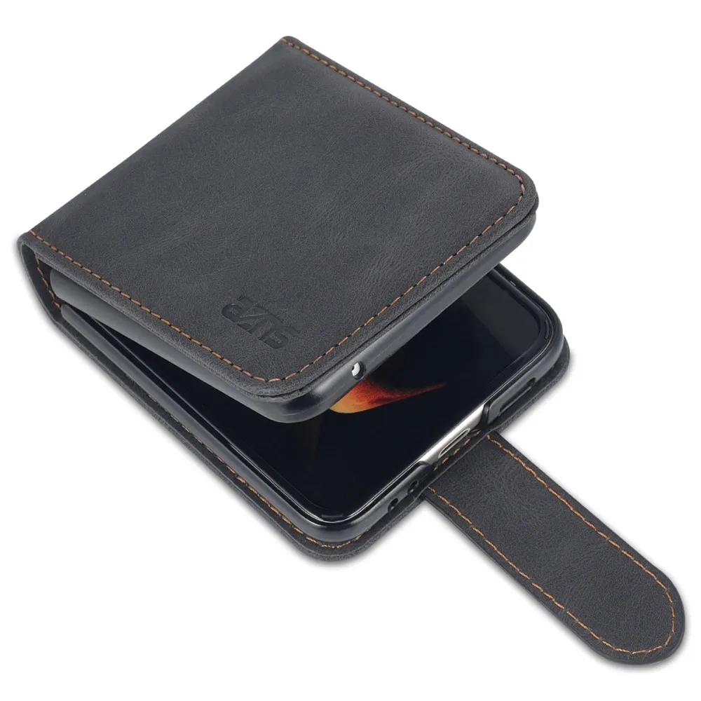 AZNS műanyag borítás PU bőrrel Samsung Galaxy Z Flip5 5G - fekete
