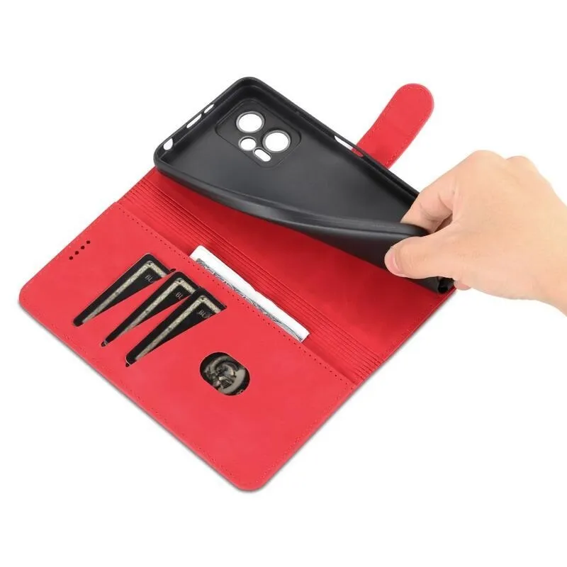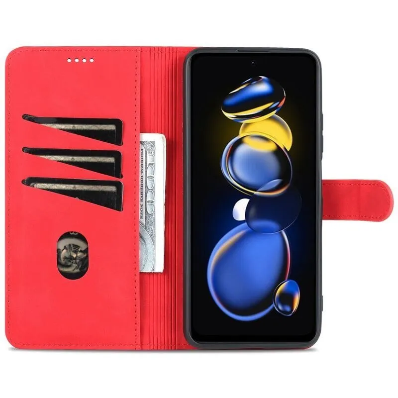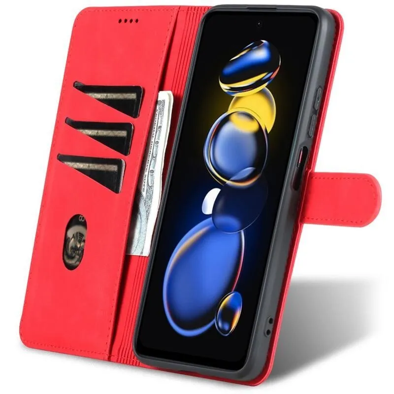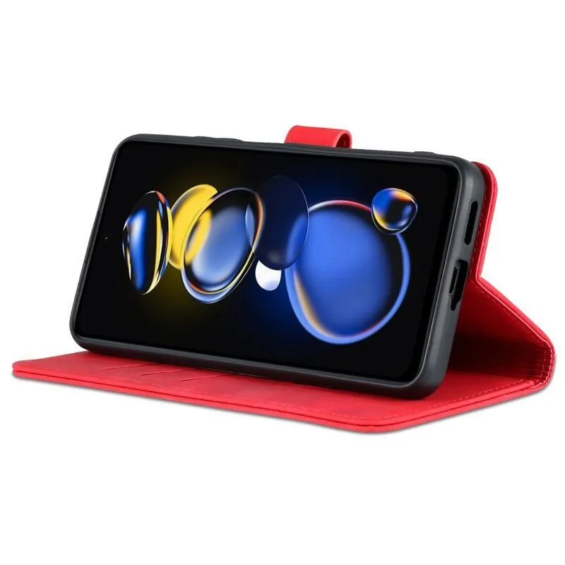 AZNS PU bőr pénztárca tok a Xiaomi Poco X4 GT 5G-hez - piros