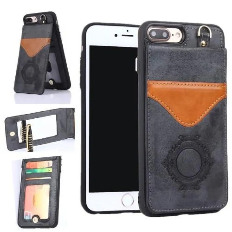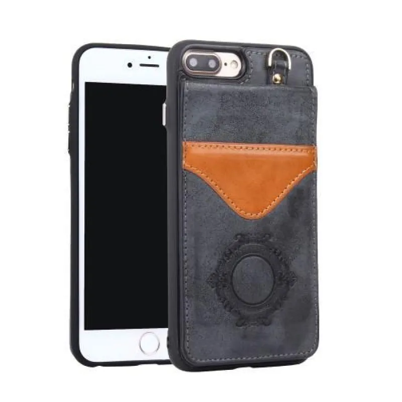 Backy gél tok PU bőr hátlappal és állvánnyal iPhone 8 Plus és 7 Plus készülékhez - Fekete