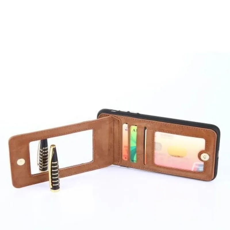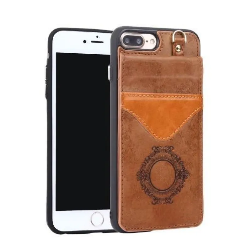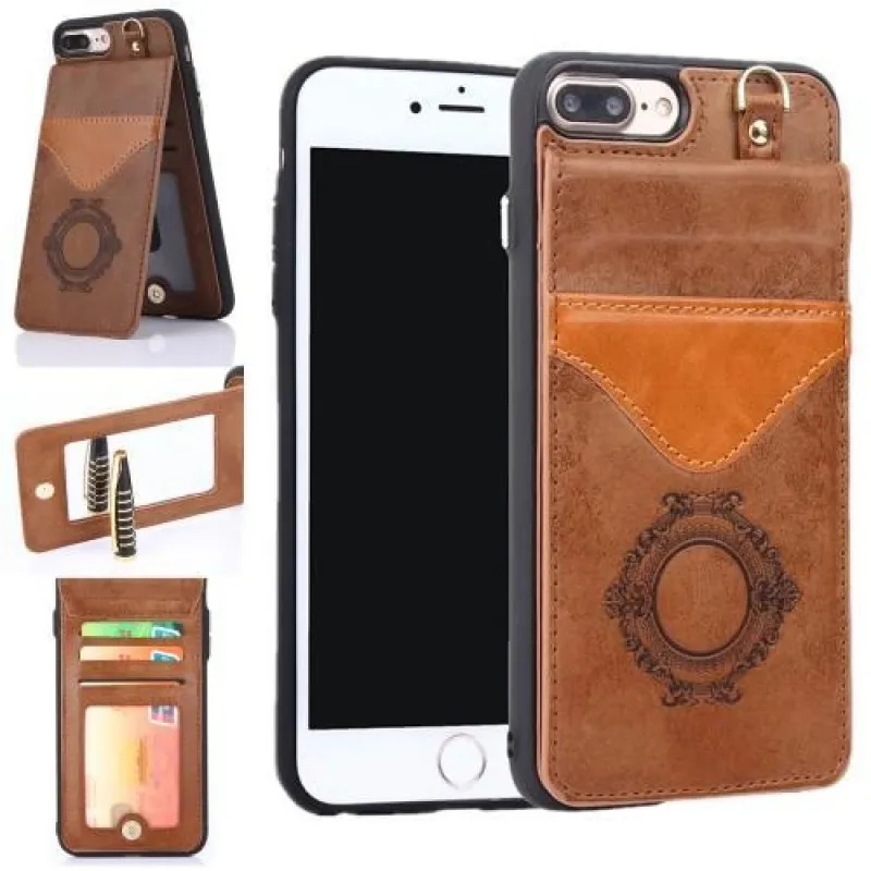 Backy zselés tok PU bőr hátlappal és állvánnyal iPhone 8 Plus és 7 Plus készülékhez - barna