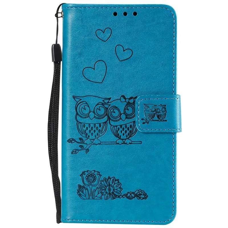 Baglyok PU bőr pénztárca tok Huawei P40-hez - kék