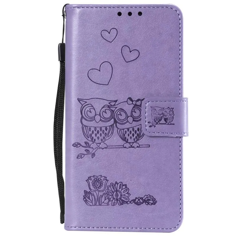 Baglyok PU bőr pénztárca tok Huawei P40-hez - lila