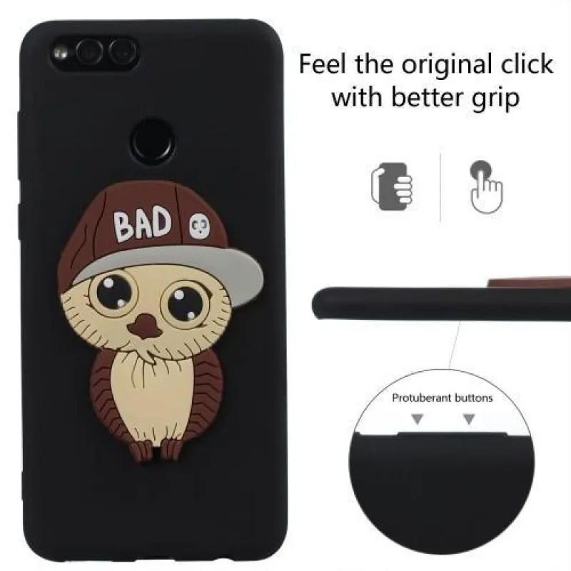 Játékos megjelenésű zselés védőborítás a Honor 7X számára 3D-s bagoly motívummal