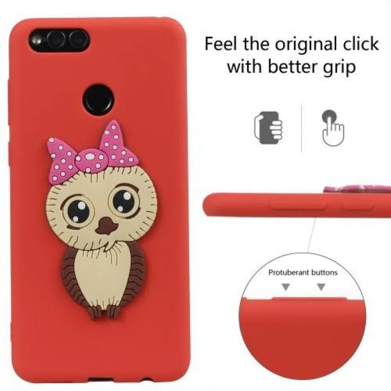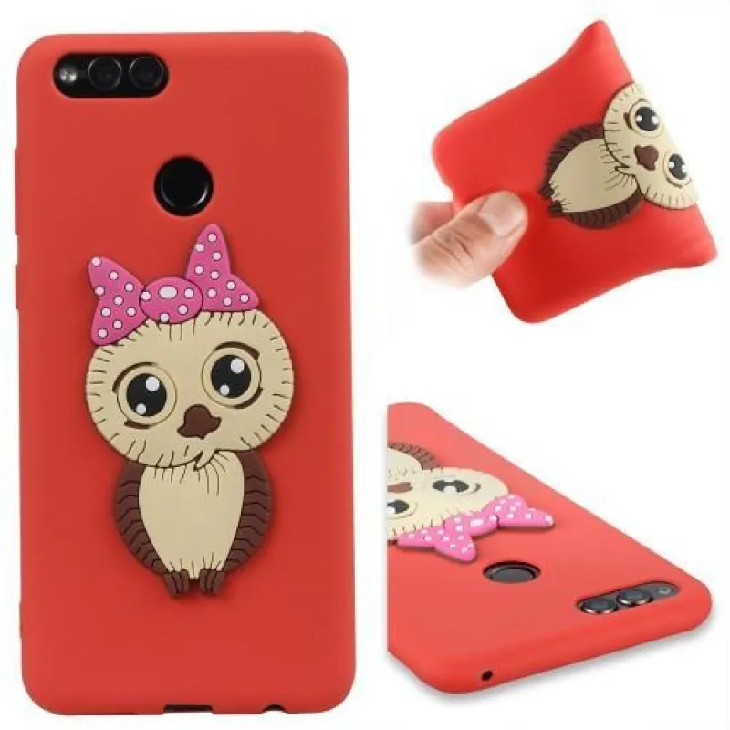 Jellegzetes és vidám megjelenésű gél védőborítás a Honor 7X készülékhez 3D motívummal, bagollyal, piros színben